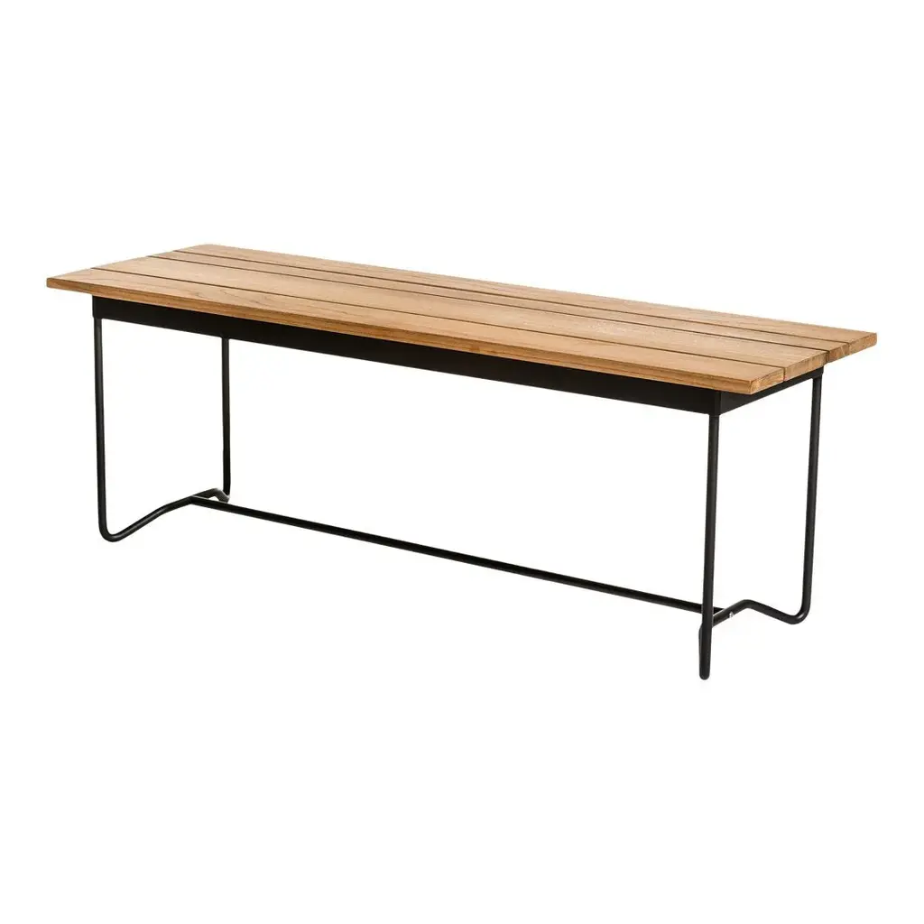 Grinda dining furniture comes in teak with a black painted steel frame. Grinda dining furniture includes a side chair, armchair, a bench, and four different sizes of tables to decorate your balcony, veranda, deck, lawn or wherever you host your dinner parties. The Grinda Bench is available with or without cushions.