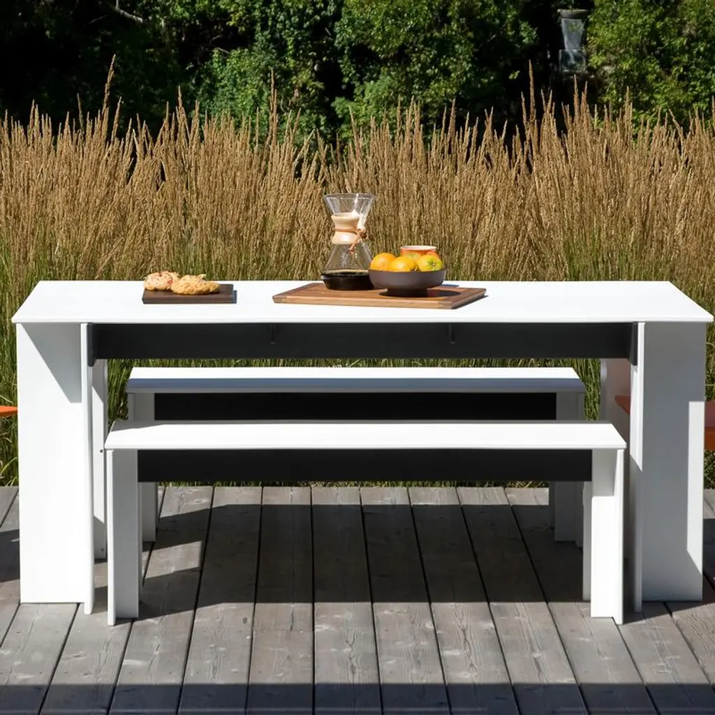 Designed with local Duluth architect David Salmela, the Hall Bench is designed as a complement for the Hall Outdoor Dining Table, but it will also make quite a statement on its own. This sturdy picnic bench is as functional as it is sculptural. Collection offered in all colors with a black Richlite frame. Features No Maintenance/Weatherproof: UV INFORMATION: RICHLITE: LOW-IMPACT MANUFACTURING: