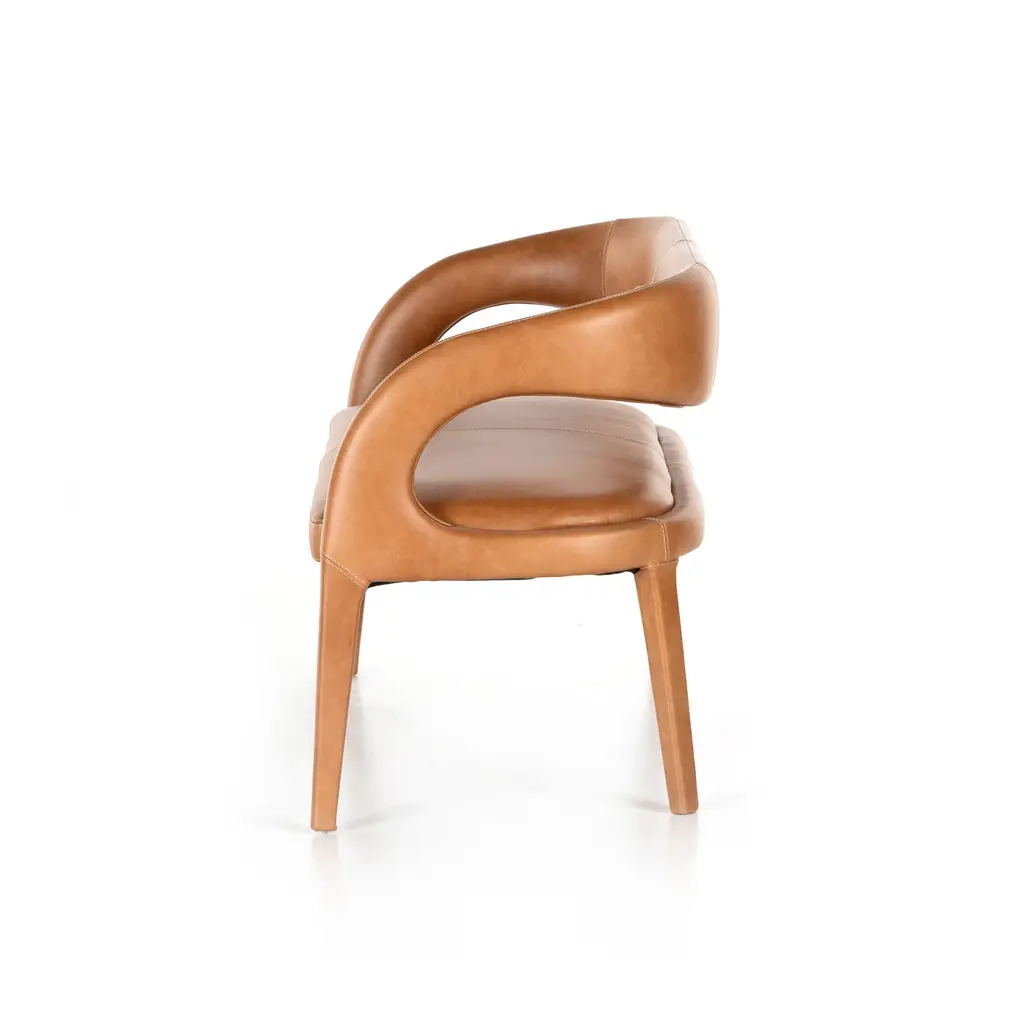 Strike a pose. Well curved and finely sculpted, tan top-grain leather exclusive to Four Hands makes for a unique and shapely addition to the modern dining room. The Hawkins collection also includes a leather counter stool, counter stool, leather bar stool, bar stool, and a bench (sold separately). Ships In 10-14 Business Days Top grain leather This image is for illustrative purposes only. The colors shown are accurate within the constraints of lighting, photography, and the color accuracy of your screen.