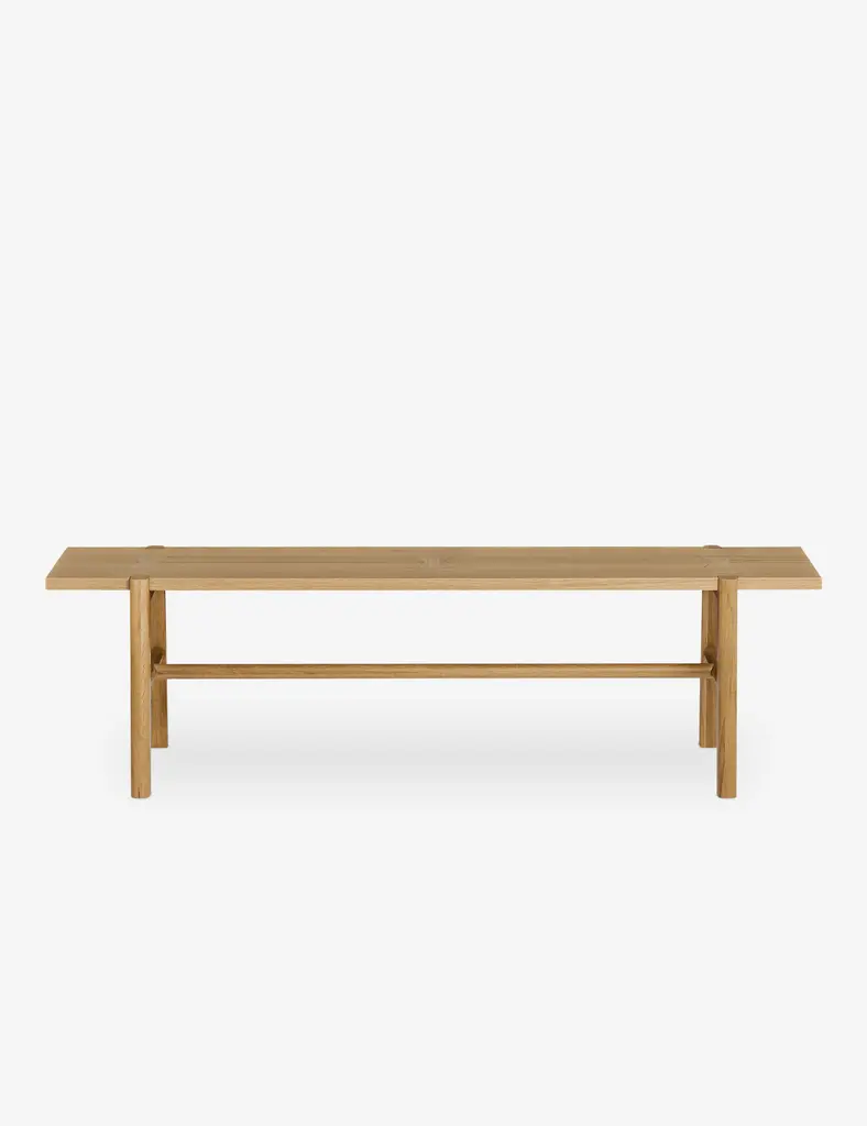 European farmhouse style gets a fresh touch in this oak dining bench. Its rustic joinery and blend of clean and rounded lines cut a solid bearing, all in a light wood finish for a modern feel in the room. This bench is perfect for setting an open table where guests are the norm or adding seating and surface space to an entryway or living space.