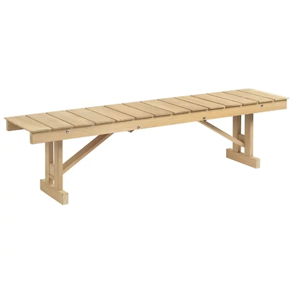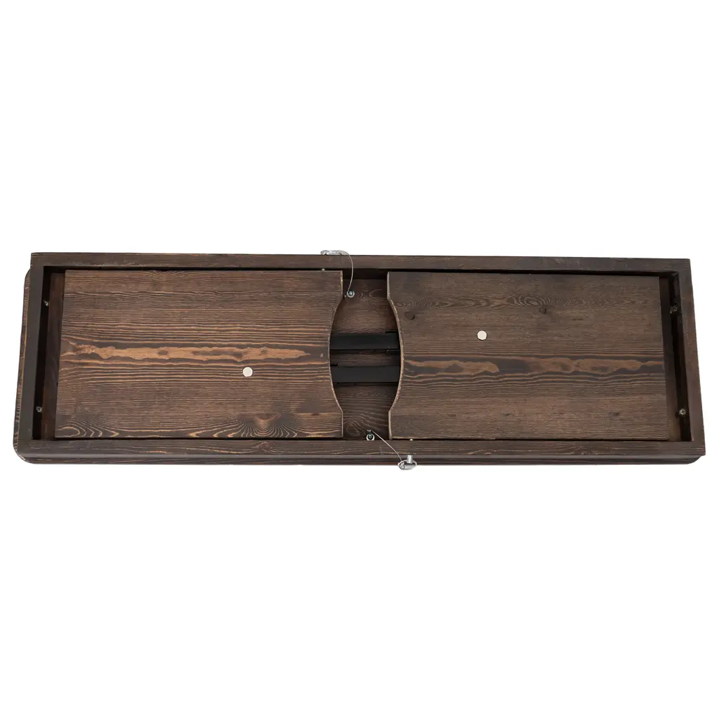 Add charm and beauty to your home with this rustic farmhouse style bench. This dining bench looks lovely when used in the entryway of your home or when paired with one of our farm dining tables. The plank top bench is beautifully constructed and comfortably seats up to 2 people. Enjoy this bench as soon as you receive it by simply unfolding the legs and pushing the pins in to secure in place while in use. This beautiful bench was designed to be used indoors but may be used outdoors for special occasions during good weather. To store your folding bench, pull the pins out and the legs securely lock underneath the seat. Whether you're going for country, vintage or modern style this bench will add warmth to your space. Suitable for commercial use, this bench will be a distinct feature in restaurants.