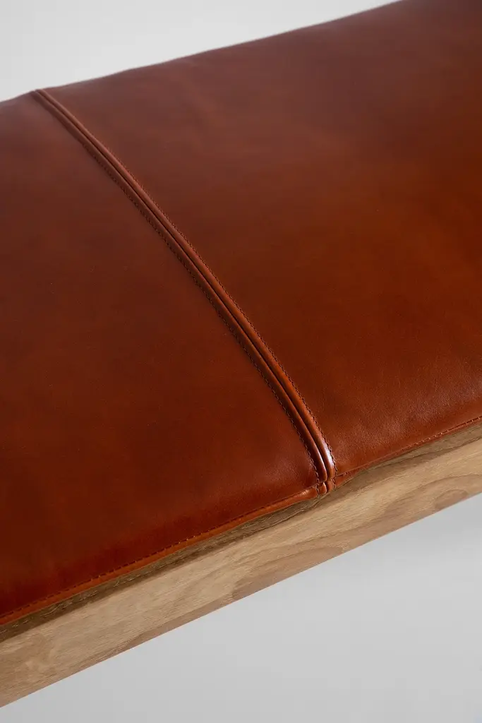 Carefully detailed and designed to be as hardworking as it is elegant, the Highland Bench juxtaposes organic cantilevered forms against the clear precision of machining. Made from white oak and available with or without cushion, and perfect for dining rooms, entryways, and bedrooms. Bench cushion is upholstered in pure aniline leather or Belgium linen. Seats three. Wood is hand-rubbed and finished with Kalon Bare Finish, a premium organic oil/wax finish painstakingly developed to preserve the delicate and luminous beauty of raw wood.