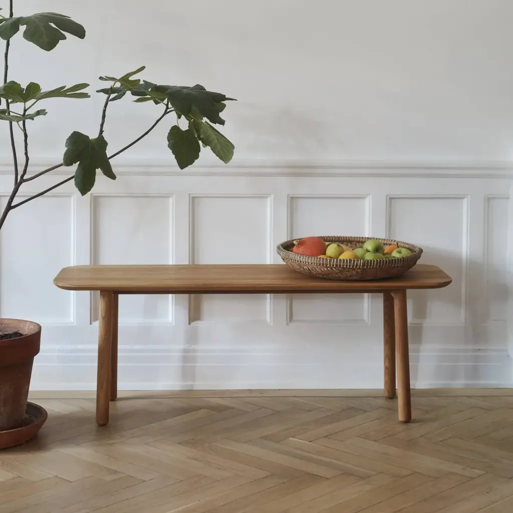 Created from sustainably sourced, FSC-certified solid oak, Anton Björsing’s bench is an essay in masterful simplicity. On its own or as a companion to the Hven collection’s dining table, it displays a beautiful grain pattern and economy of design. Unreservedly sturdy, the bench melds easily in any eclectic mix with its accommodatingly rounded legs and corners.