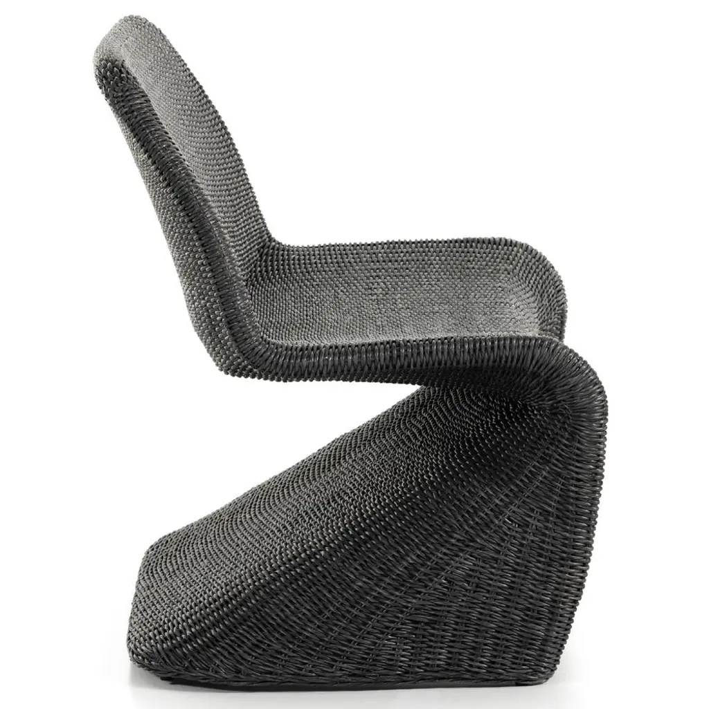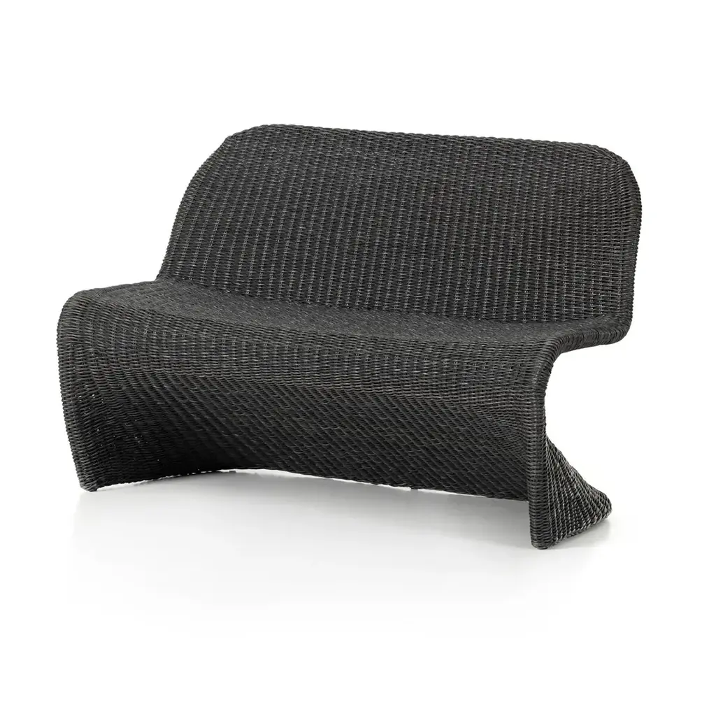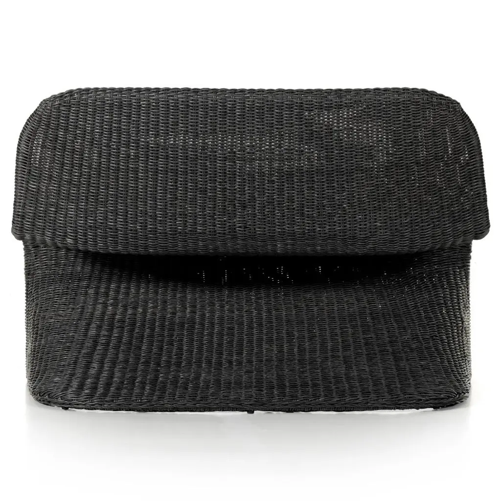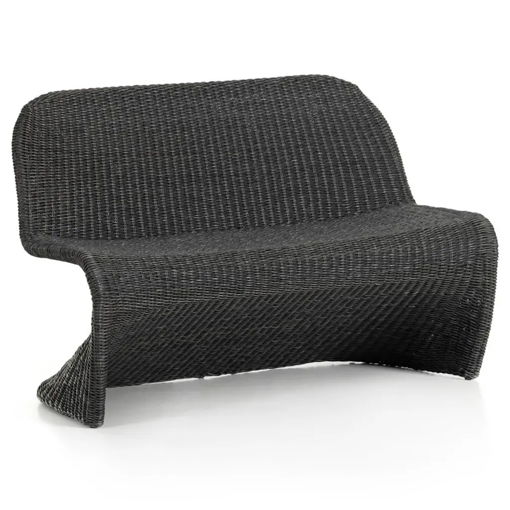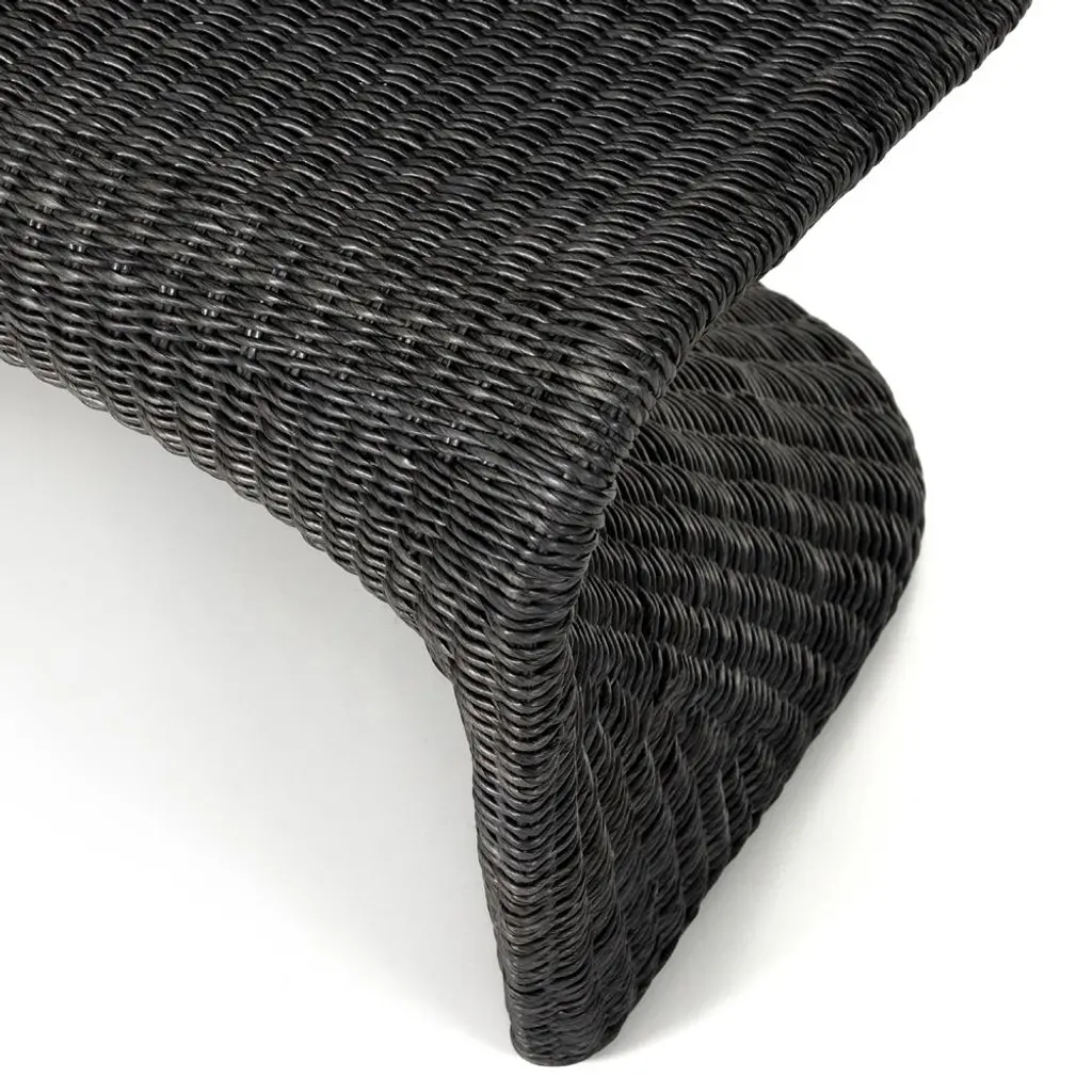 Ivanna Coastal Beach Black Woven Wicker Outdoor Dining Bench