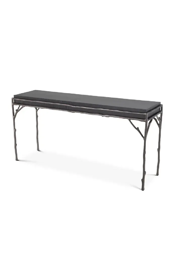 The Kai Bench from Jamie Young Co. unites hand-forged iron with premium leather cushioning. The curved iron frame showcases skilled metalwork, while the thick cushions provide lasting comfort. Natural hide variations make each piece distinct, developing character over time. The bench also adapts to multiple settings - from dining tables to entryways to bedroom footboards. This fusion of raw materials results in a piece that works well in both traditional and modern spaces.