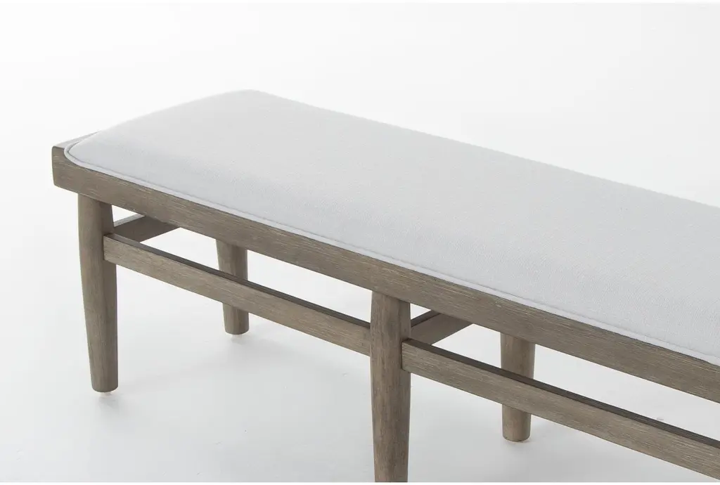 Turn any occasion into a special celebration with our classic Kasey dining bench. Elements of rustic design and traditional style combine to craft this elegant piece that boasts uniquely beautiful details. Solid hardwood and veneers in a washed grey finish bring in natural character, while an upholstered seat adds tailored support.