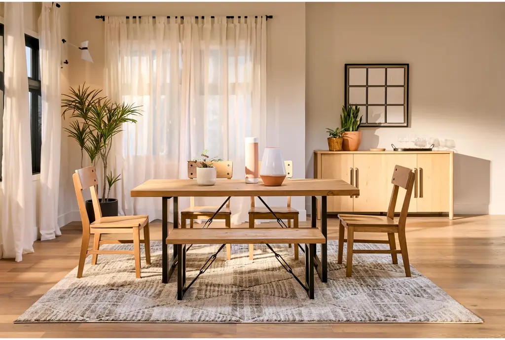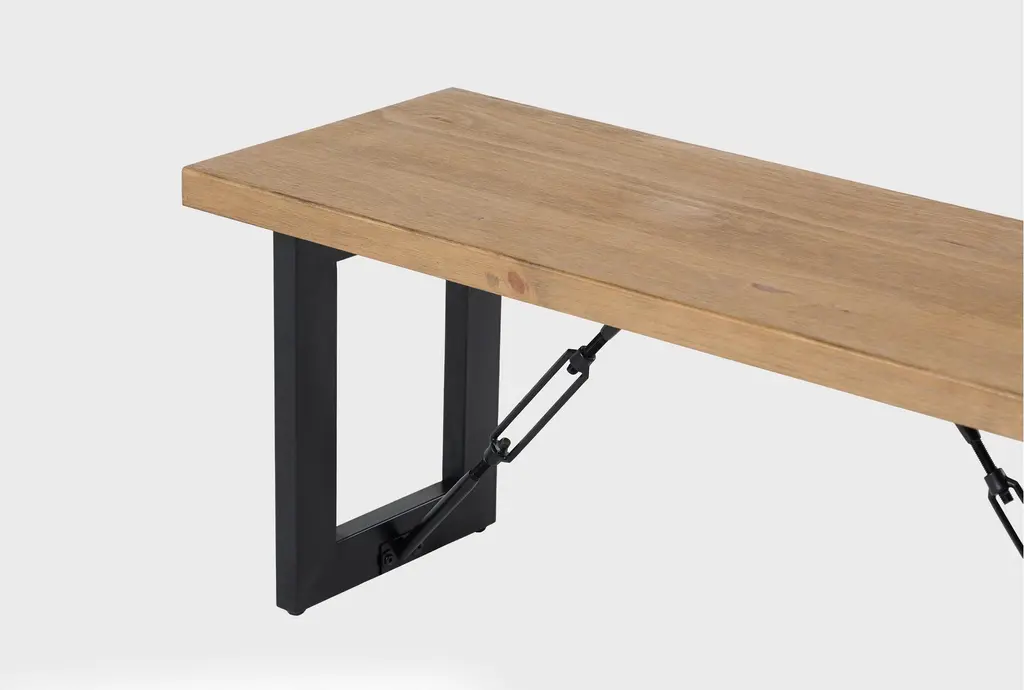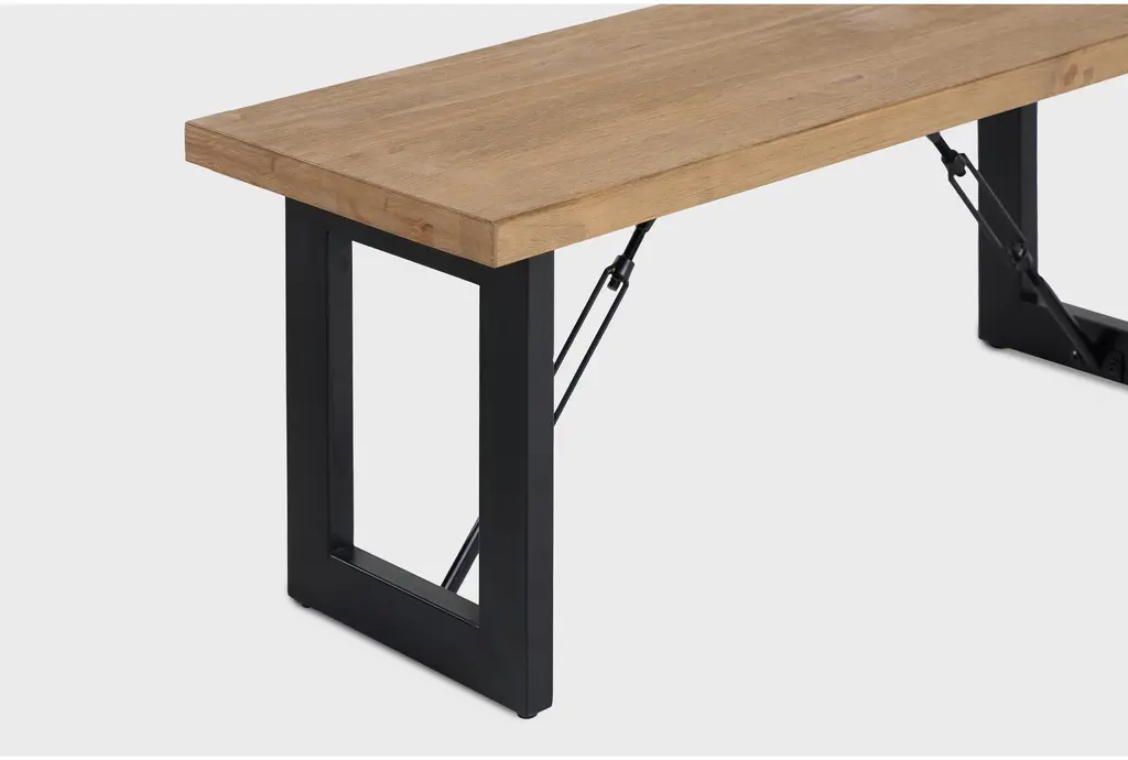 Industrial style is here to work hard and play hard in your space with our Kenna dining bench. Clean modern lines, sturdy materials and mixed construction bring character and durability to the piece, which is designed with entertaining in mind. It juxtaposes warm solid pine with cool black metal for a sleek look. Best of all, it's available at an incredible value, so you can enjoy for less.