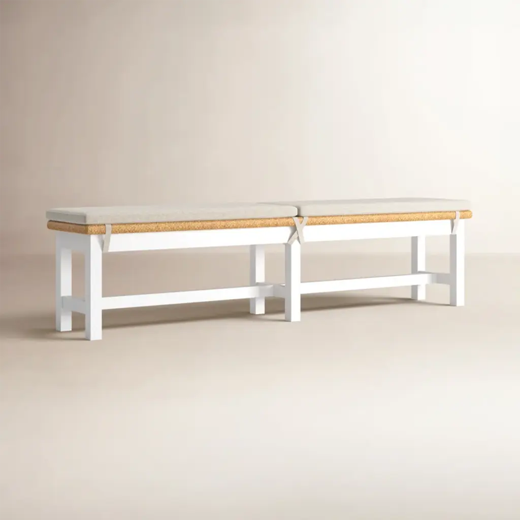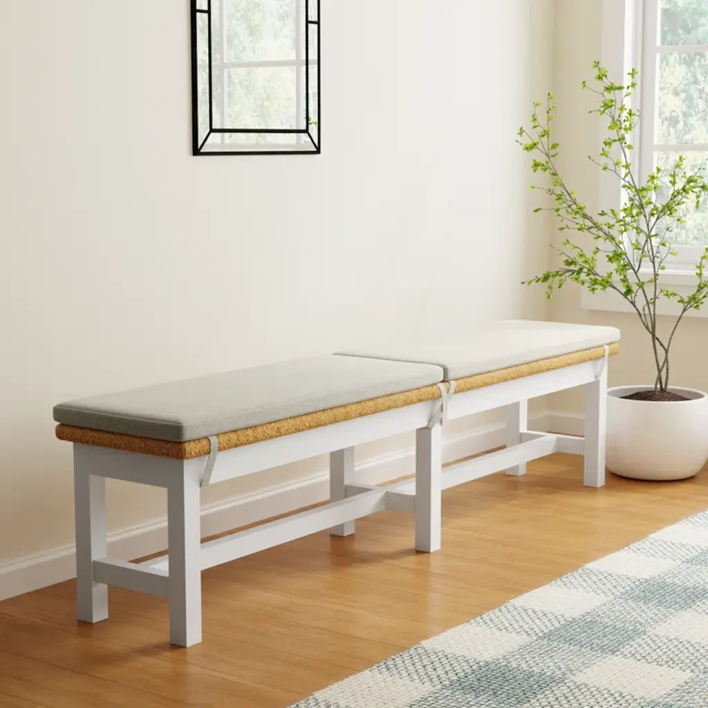 Gather around for cozy meals and friendly conversations with this lovely dining bench. With its inviting wicker and solid wood frame, this bench is a delightful addition to your dining room or kitchen nook. The gray upholstery and straight rubberwood legs blend seamlessly with various color palettes, while the trestle base adds a touch of rustic charm. Designed to comfortably seat three people, this bench is a versatile and timeless piece that's perfect for family dinners or casual get-togethers. Just remember to spot clean with a dry cloth and avoid abrasive cleaners to keep it looking its best.