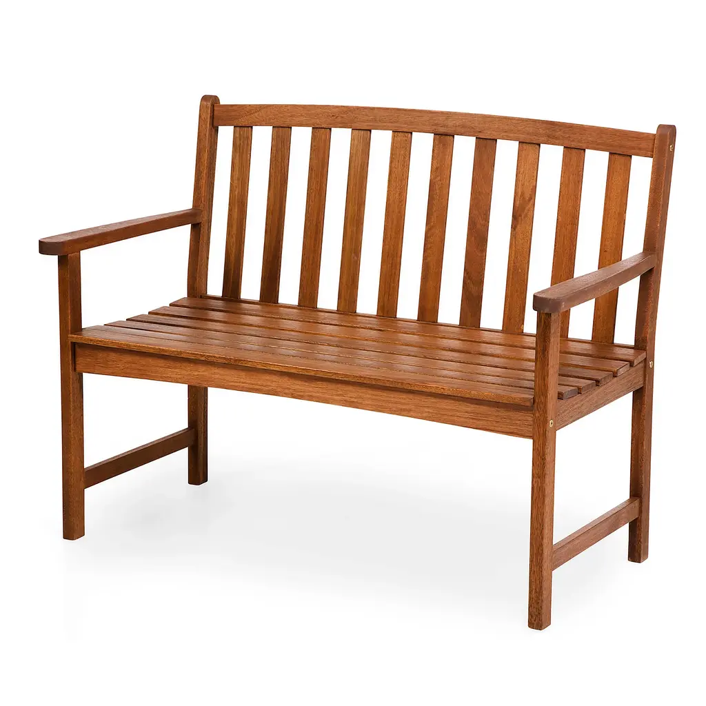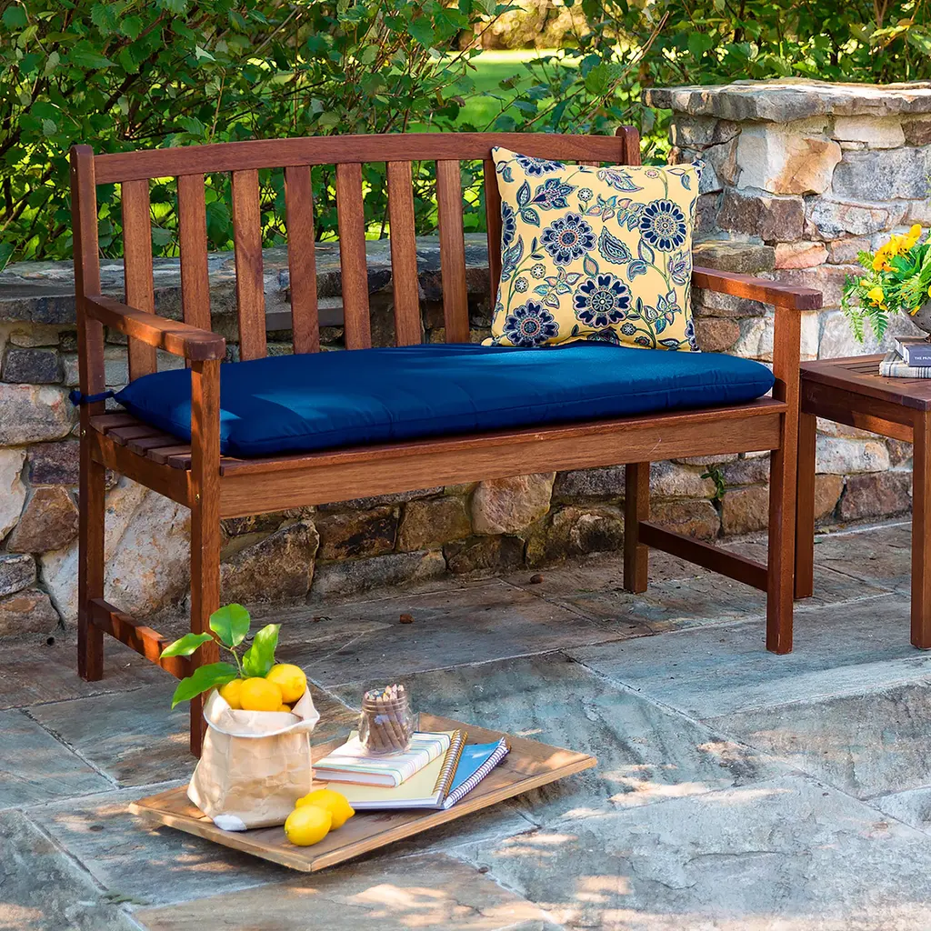 Our Lancaster Eucalyptus Wood Bench is crafted from genuine FSC-certified eucalyptus grandis. Our bench for two makes for great additional seating anywhere – even fitting underneath our dining tables. You’ll notice the many refinements that add up to a superior product: straighter grain; better proportioned seating and dining pieces; thicker frames, legs and arms; and upgraded hardware. A multi-step finish offers a deep, rich color and gorgeous good looks. For maximum enjoyment and use, off-season storage is recommended. Assembly required. Cushion sold separately. Part of our Lancaster Outdoor Furniture Collection.