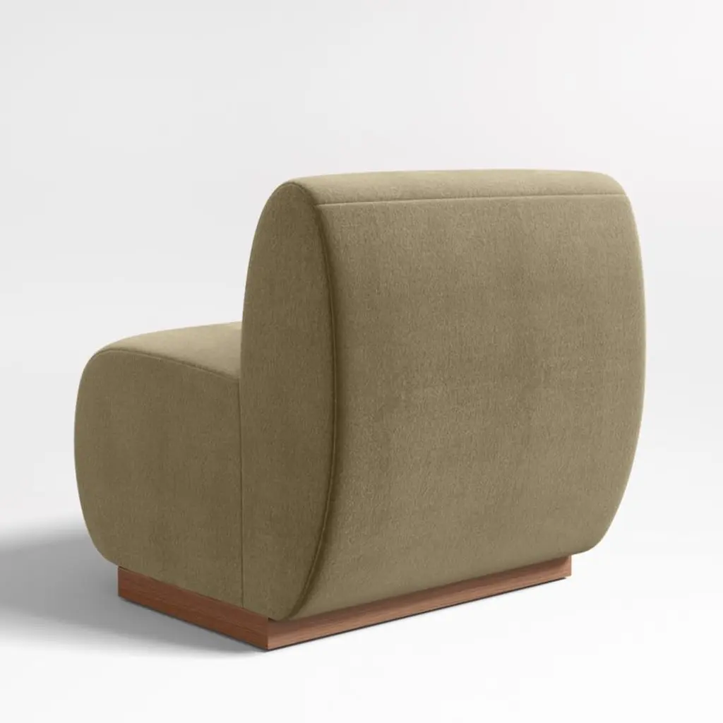 The best seat in the house. Leandro brings home the luxe feel of VIP fine dining with its soft faux-mohair upholstery in a hazel blend of gold, brown and green. Waterfall curves give the banquette's tight seat and back a graceful look, while oversized cushions dominate the design and anchor your dining room or kitchen with contemporary style. Supportive foam cushioning holds its shape for many dinner parties to come, wrapped in soft fiber for comfort. Combine the single banquette with the Leandro corner and bench banquettes for a custom arrangement to suit your space.