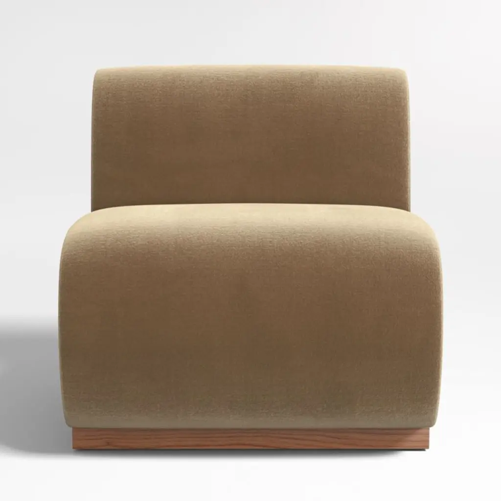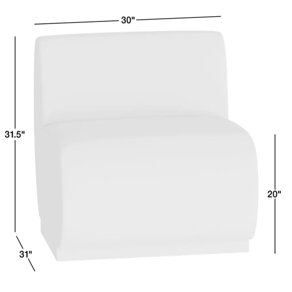 The best seat in the house. Leandro brings home the luxe feel of VIP fine dining with its soft faux-mohair upholstery in warm ocher brown. Waterfall curves give the banquette's tight seat and back a graceful look, while oversized cushions dominate the design and anchor your dining room or kitchen with contemporary style. Supportive foam cushioning holds its shape for many dinner parties to come, wrapped in soft fiber for comfort. Combine the single banquette with the Leandro corner and bench banquettes for a custom arrangement to suit your space.