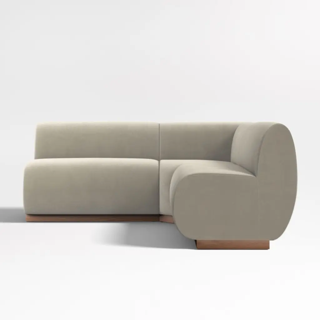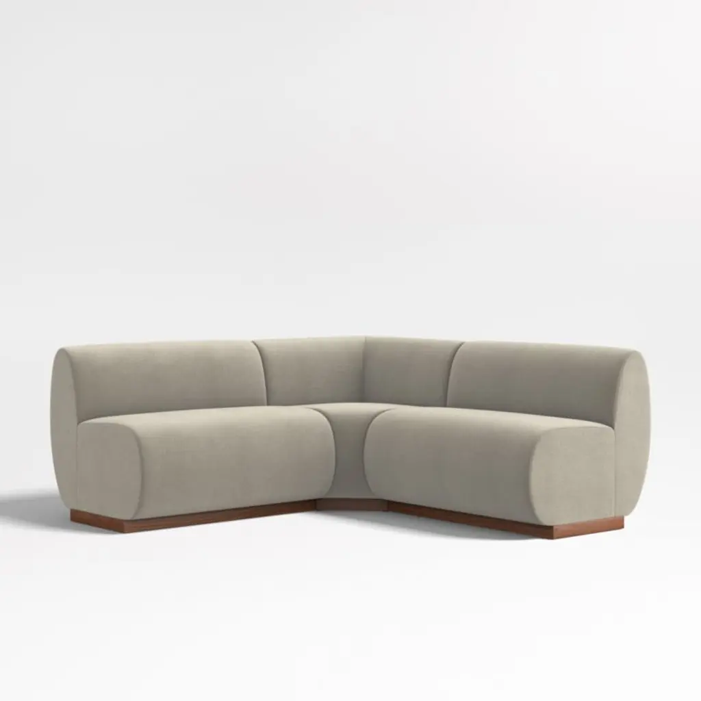 The best seat in the house. Leandro brings home the luxe feel of VIP fine dining with its soft faux-mohair upholstery. Waterfall curves give the L-shaped banquette's tight seat and back a graceful look, while oversized cushions dominate the design and anchor your dining room or kitchen with contemporary style. Supportive foam cushioning holds its shape for many dinner parties to come, wrapped in soft fiber for comfort. The three-piece banquette consists of two benches and a corner chair.