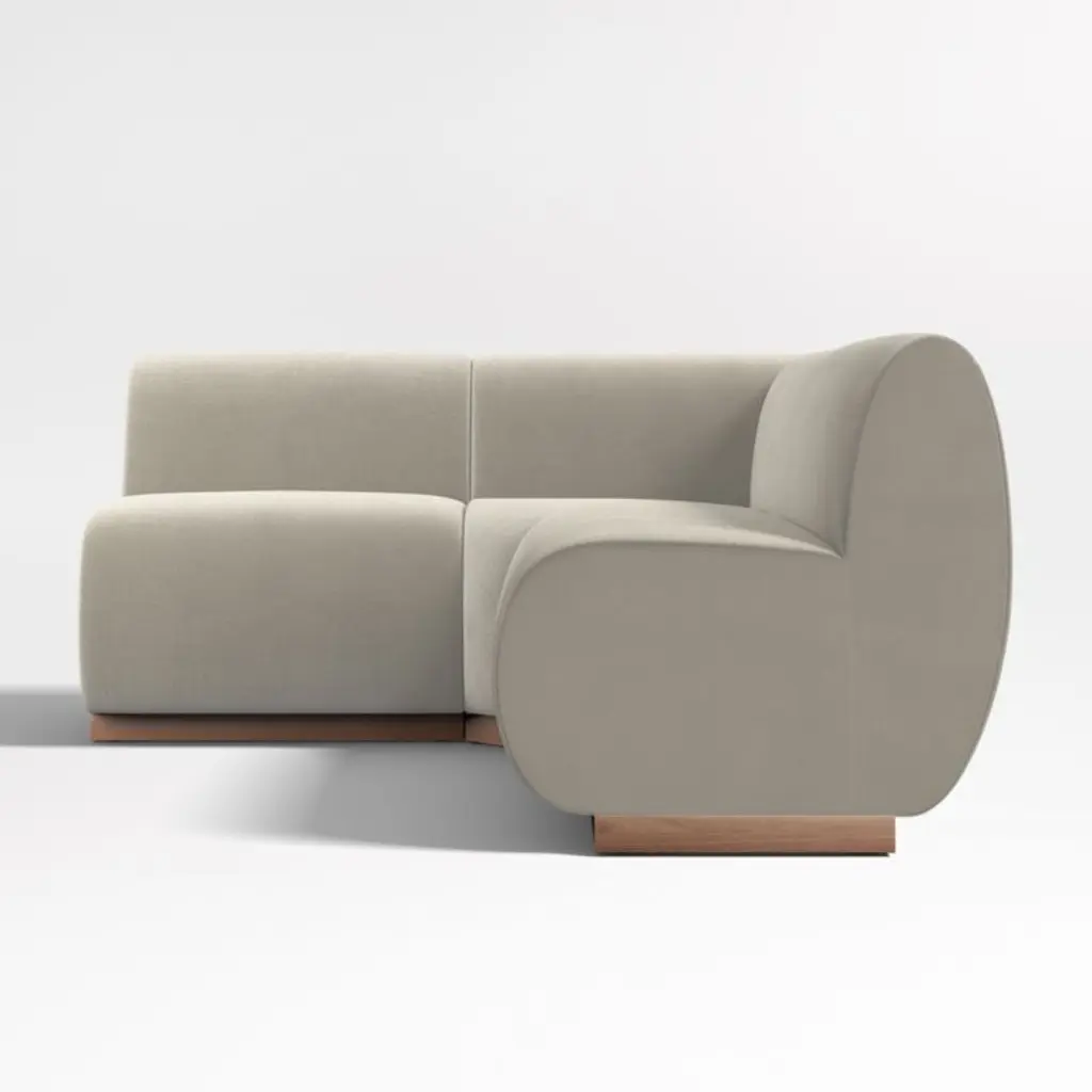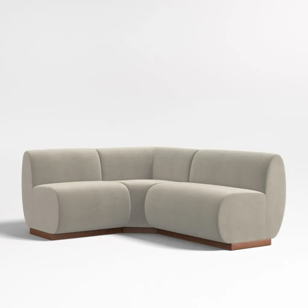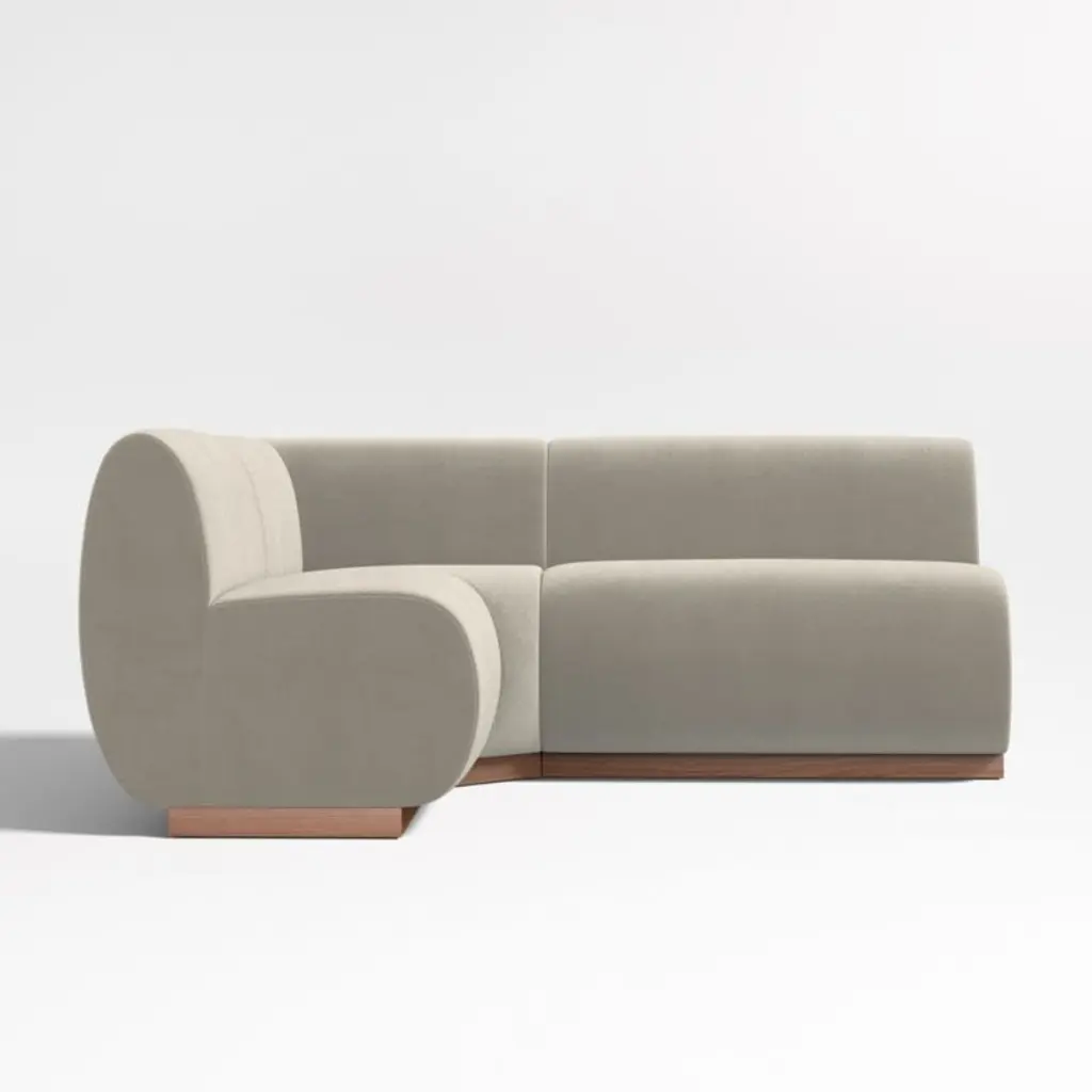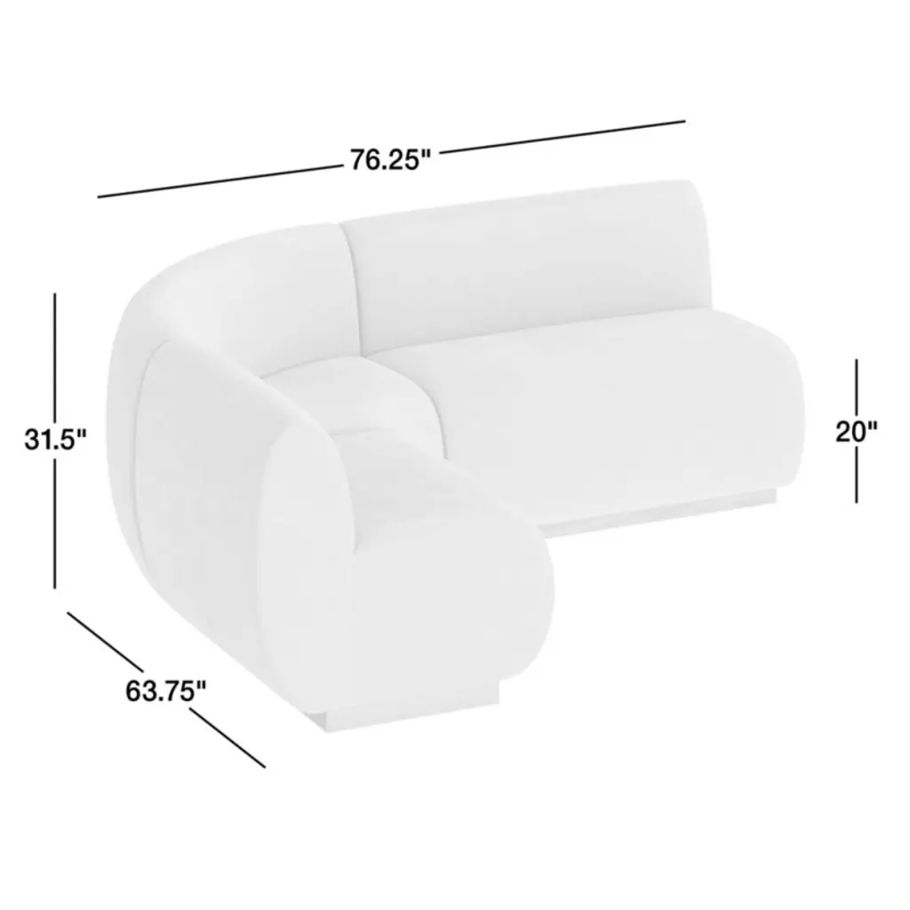 The best seat in the house. Leandro brings home the luxe feel of VIP fine dining with its soft faux-mohair upholstery. Waterfall curves give the L-shaped banquette's tight seat and back a graceful look, while oversized cushions dominate the design and anchor your dining room or kitchen with contemporary style. Supportive foam cushioning holds its shape for many dinner parties to come, wrapped in soft fiber for comfort. The three-piece banquette consists of one bench, one single and a corner chair.