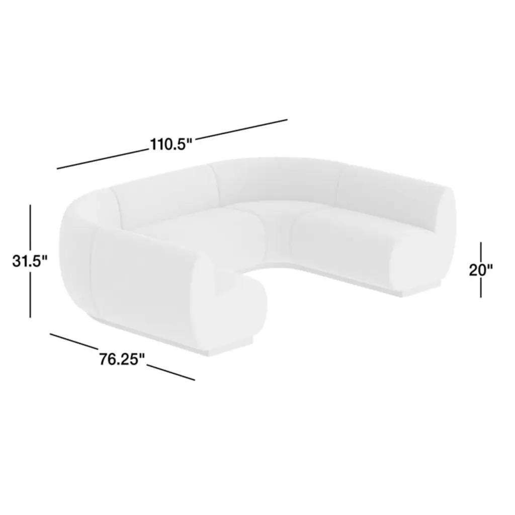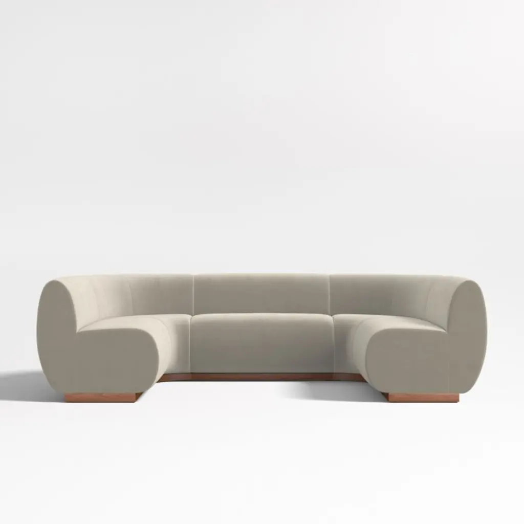 The best seat in the house. Leandro brings home the luxe feel of VIP fine dining with its soft faux-mohair upholstery. Waterfall curves give the U-shaped banquette's tight seat and back a graceful look, while oversized cushions dominate the design and anchor your dining room or kitchen with contemporary style. Supportive foam cushioning holds its shape for many dinner parties to come, wrapped in soft fiber for comfort. The five-piece banquette consists of three benches and two corner chairs.