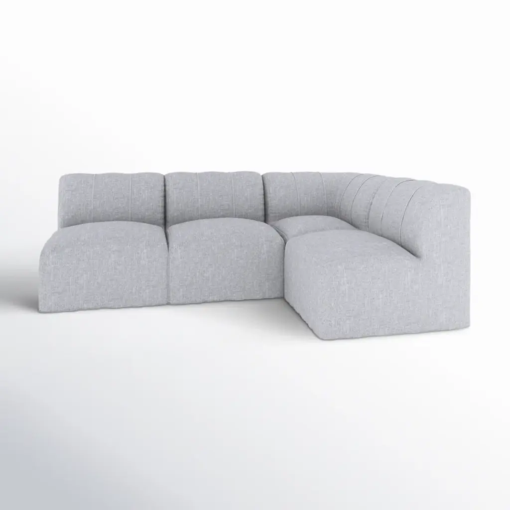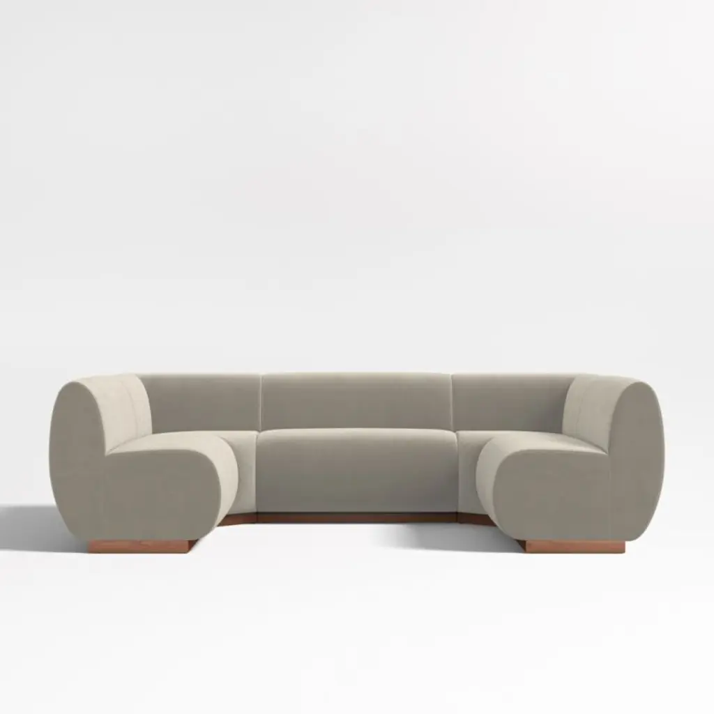 The best seat in the house. Leandro brings home the luxe feel of VIP fine dining with its soft faux-mohair upholstery. Waterfall curves give the U-shaped banquette's tight seat and back a graceful look, while oversized cushions dominate the design and anchor your dining room or kitchen with contemporary style. Supportive foam cushioning holds its shape for many dinner parties to come, wrapped in soft fiber for comfort. The five-piece banquette consists of three benches and two corner chairs.