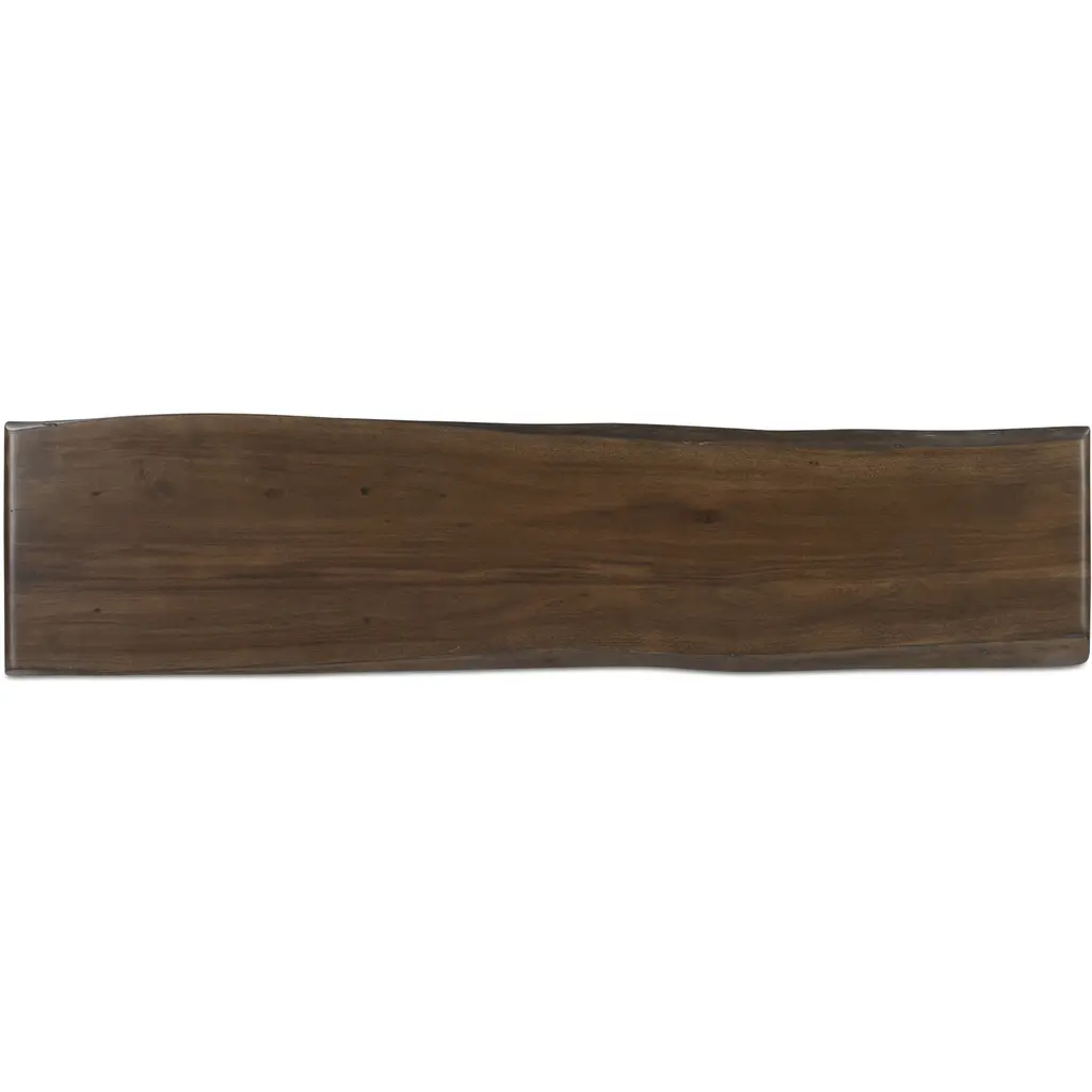 The Lila dining bench reimagines its live edge. It introduces a softer appeal with bullnose edging on the shorter ends and base, offering a delicate sophistication. This piece is an invitation to the beauty of live edge with an elegant, feminine touch.