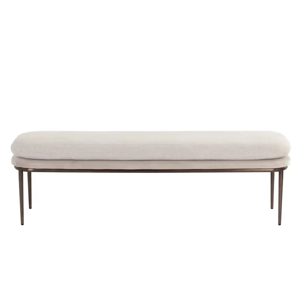 Solid oak legs support bench-style dining seat with water-repellent performance fabric in a versatile cream. Nailhead trim for fun finishing touch. Performance fabrics are specially created to withstand spills, stains, high traffic and wear, ensuring long-term comfort and unmatched durability.