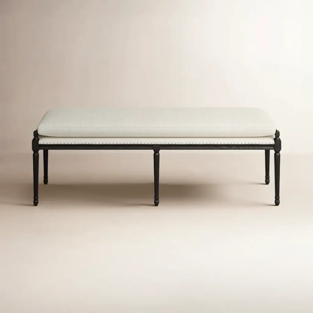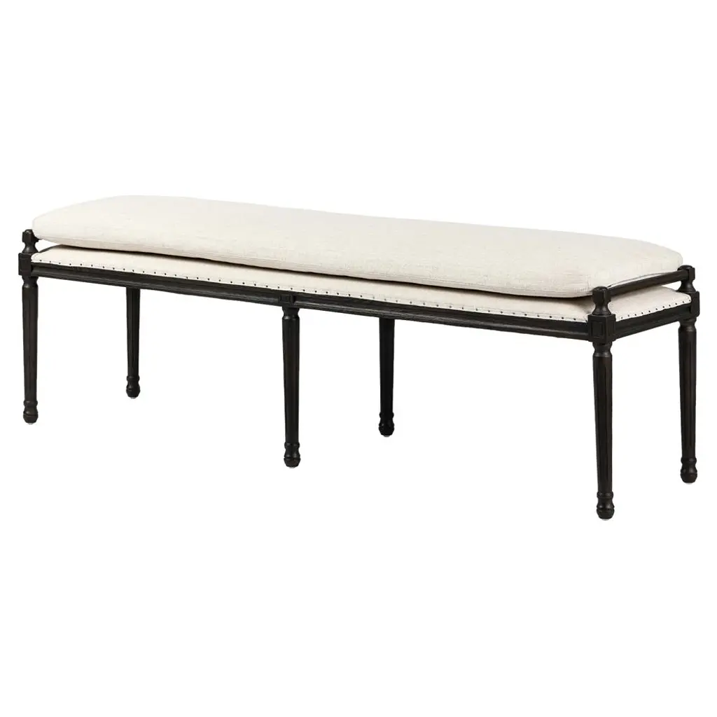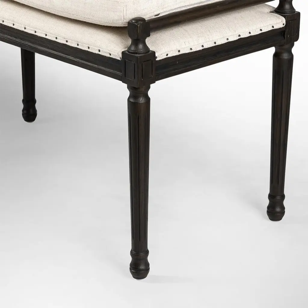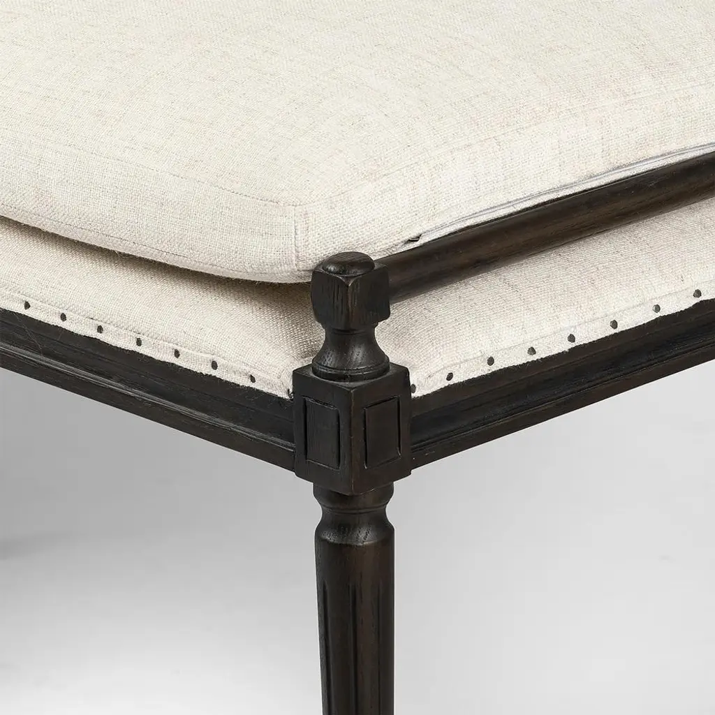 Lucy French Cream Performance Dark Brown Oak Nailhead Trim Dining Bench
