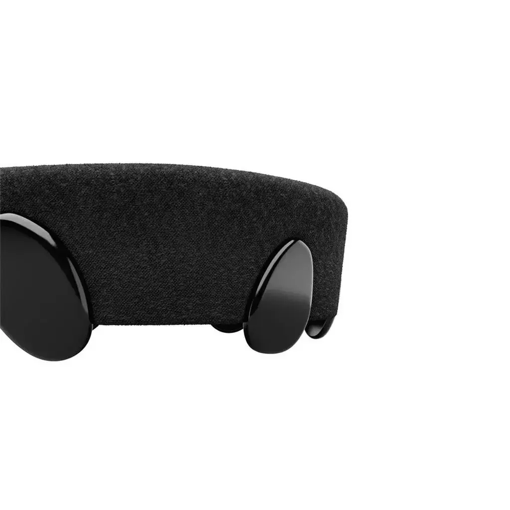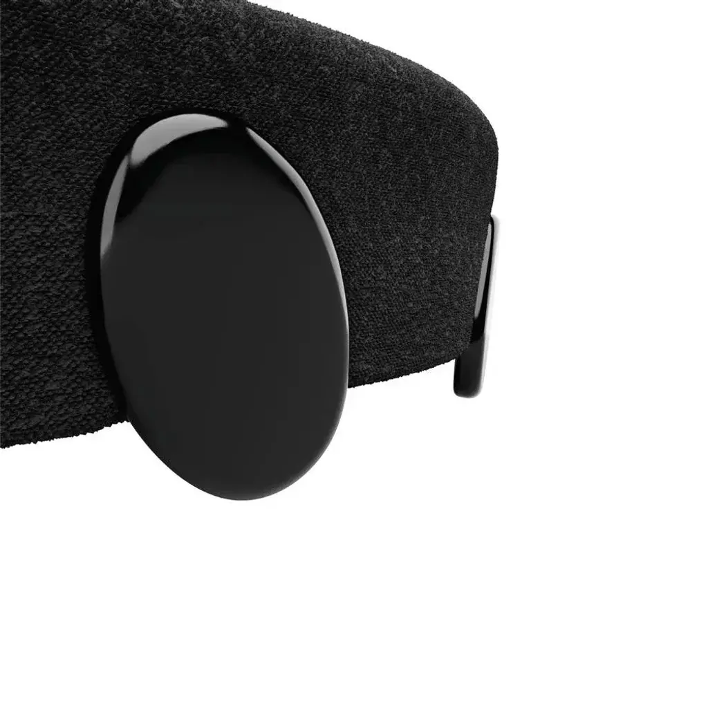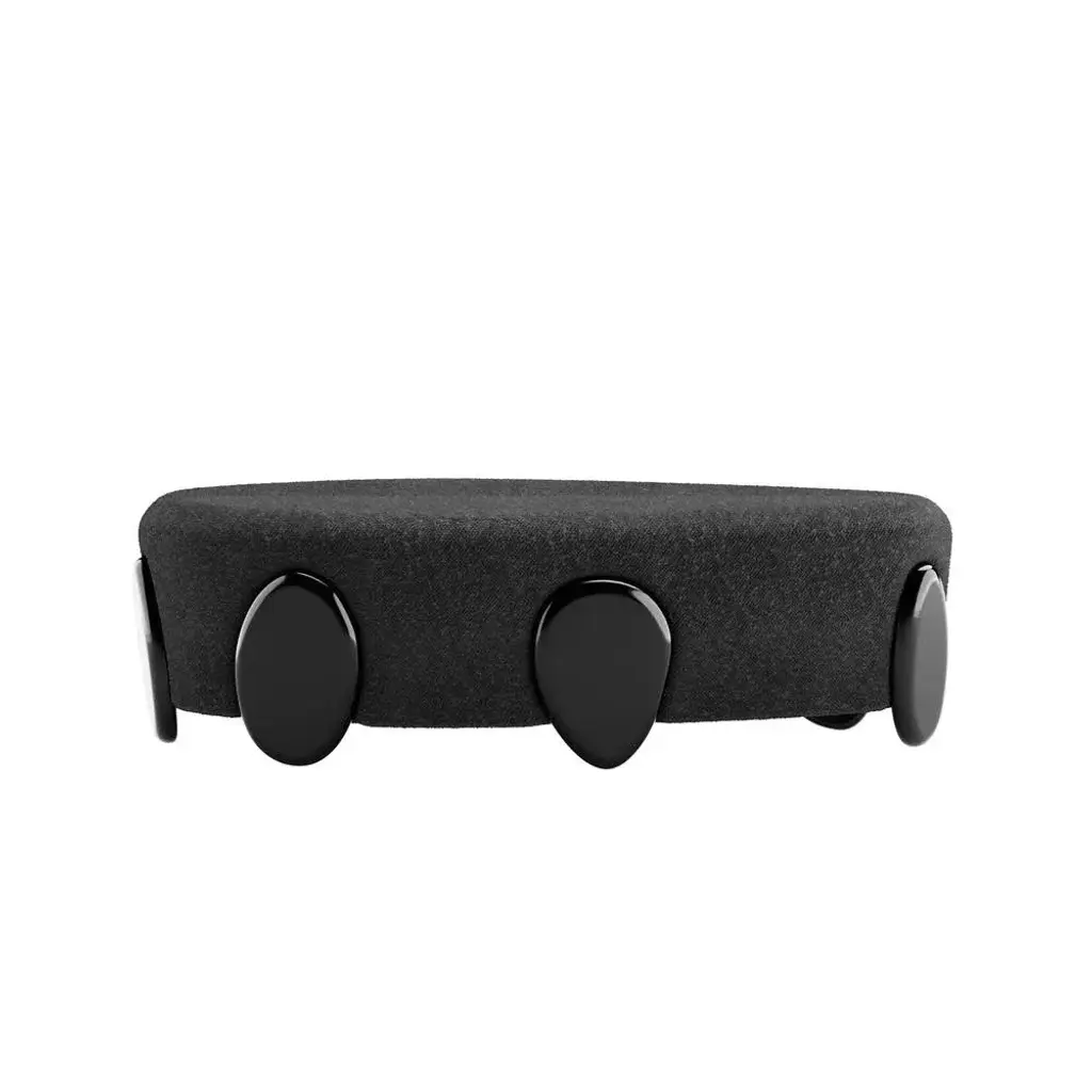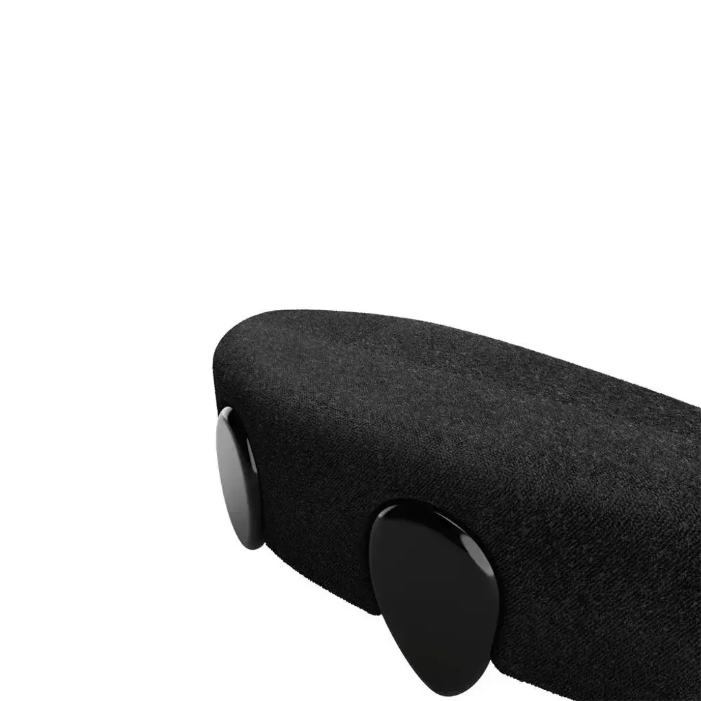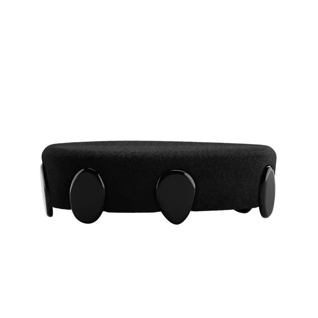 Lunarys Bench is a maximalist bench with a seductive texture and a luxurious combination of simple shapes. The bench has a rounded silhouette and is upholstered in velvet for a warm and inviting feel. This sophisticated seating option is the perfect addition to a contemporary dining room or to create a cozy moment in the entryway or hallway. MATERIALS: Upholstered in Bouclé Fabric; Feet in Handpainted wood in Gloss Black
