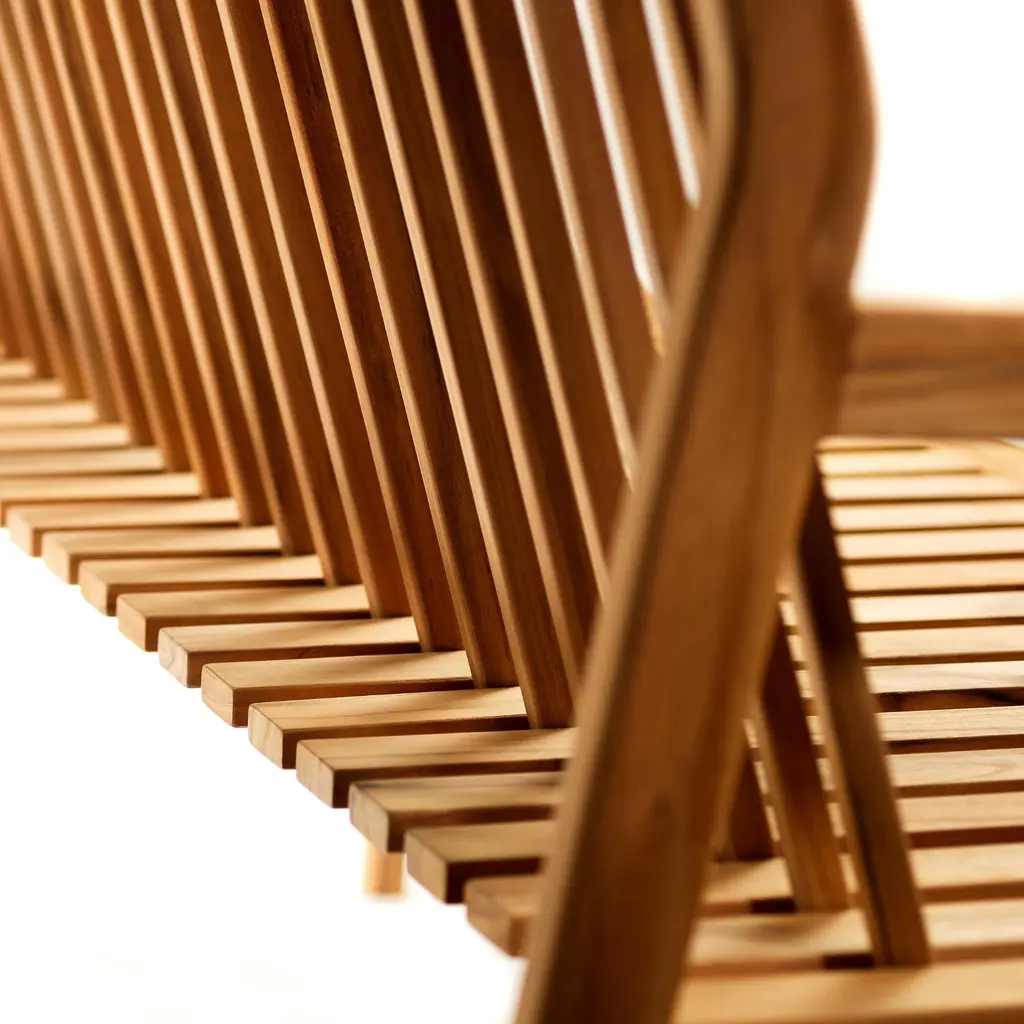 Designed by Thomas E. Alken for FDB Møbler, the M11 Sammen Bench brings the warmth of indoor seating into the garden without feeling precious. It’s built from solid teak with a natural oil finish, left open in structure so air and light pass through easily. The backrest has just enough angle to make sitting feel relaxed, even over a long meal, and the three-seat length makes it a practical choice when you’re hosting more than usual. It pairs cleanly with the dining tables in the Sammen series, but it also holds its own under a tree, against a wall, or along a quiet path—wherever an extra seat might turn into an invitation to stay a little longer.