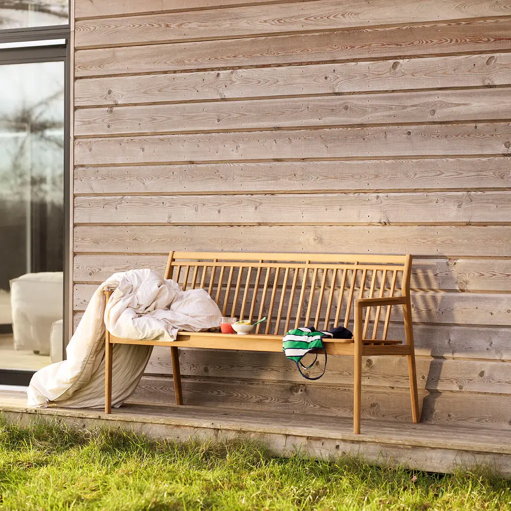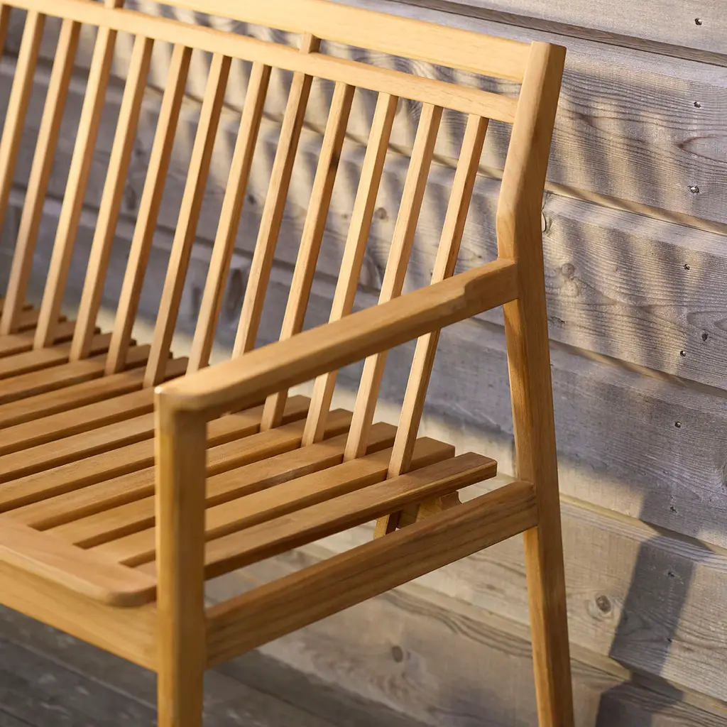 The M11 Sammen Outdoor Bench, crafted from naturally oiled teak, embodies FDB Mobler’s tradition of refined Danish design and expert craftsmanship. Ideal for additional dining seating or a tranquil garden spot, it complements the M2 dining table and matching chairs beautifully. Enhanced with new cushions, this bench offers both comfort and versatility, inviting you to enjoy your outdoor space with understated elegance. Highlights