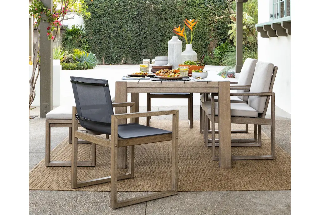 Our streamlined, serene Malaga collection is expanding with the addition of items that are bringing more strength and more style to your backyard. Crafted with FSC-certified eucalyptus that’s wire brushed in a weathered grey finish, these designs allow you to enjoy the natural beauty of a tropical hardwood that comes from responsibly managed forests. Not only does it boast oils that repel moisture, water and insets while protecting the wood from rot and decay, it has a tight grain and silver patina that develops over time. This patio piece will elevate your outdoor space.