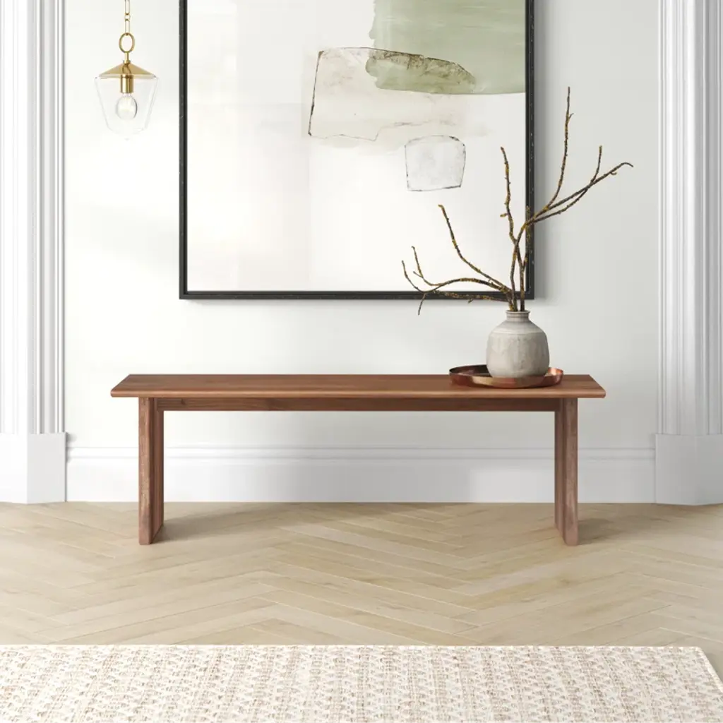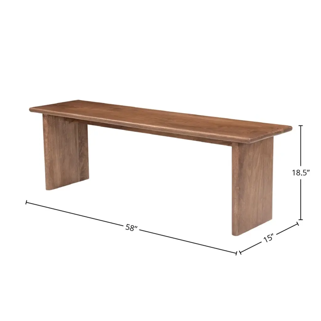 Reflecting a fusion of elegance and minimalism, the Marguerite mango dining bench is a testament to refined craftsmanship. Crafted from solid mango wood, its elongated, gently-rounded legs and top exude a serene, natural ambiance. The design principle centers around revealing the most pristine aspects of mango wood. Balancing functionality with aesthetics, this piece effortlessly elevates any dining space.
