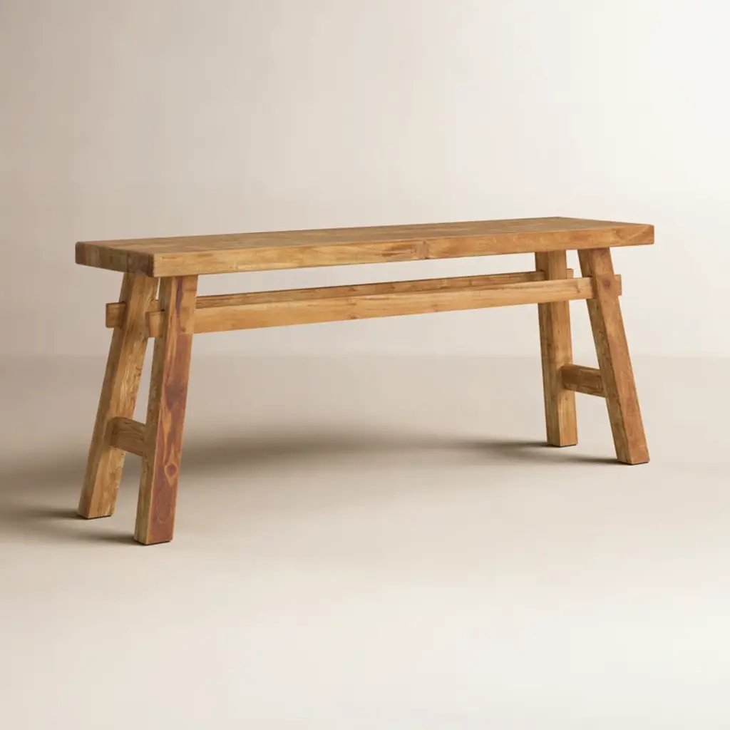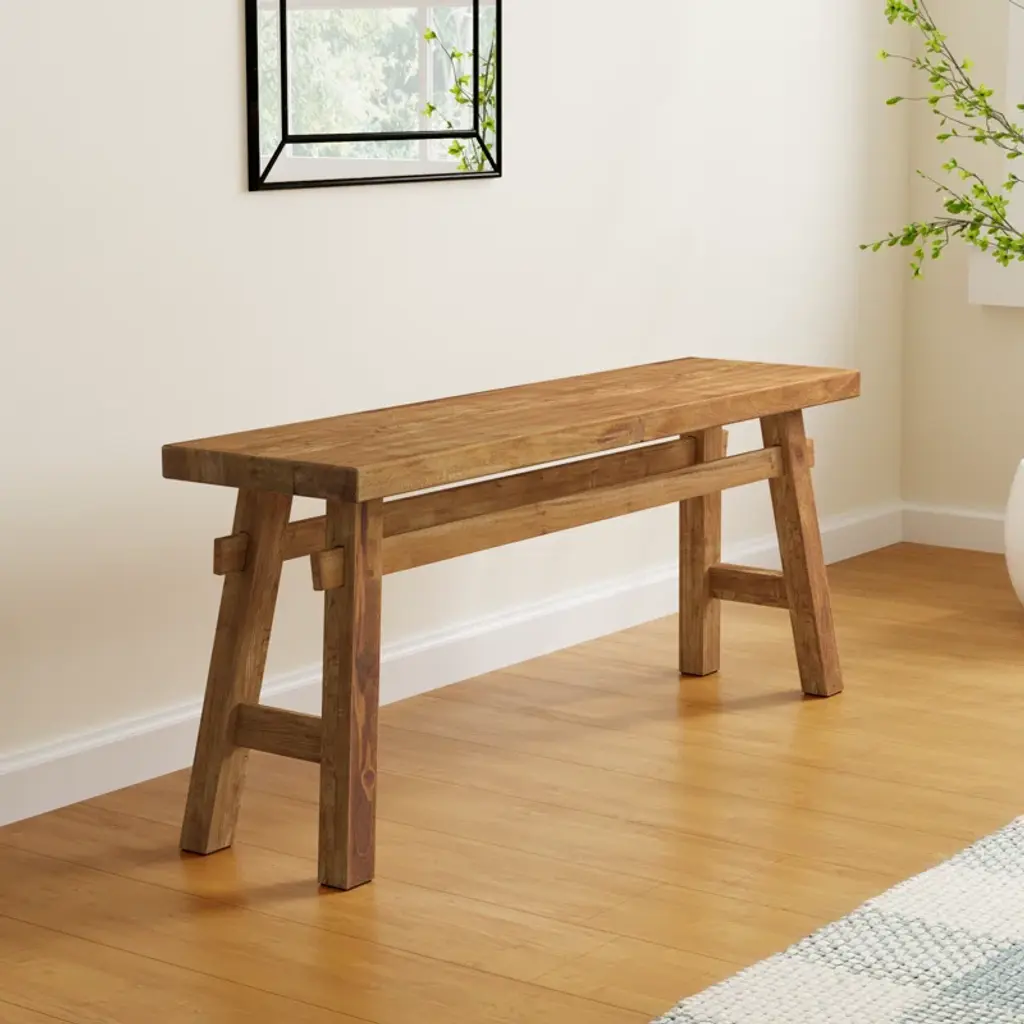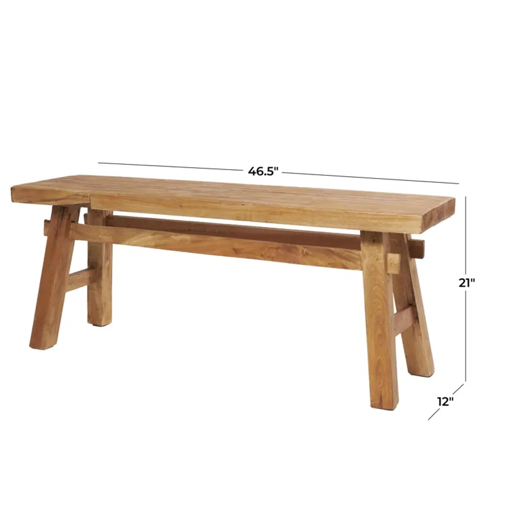 Milani Brown Wood Handmade Distressed Bench With High Trestle Legs 47" X 12" X 21"