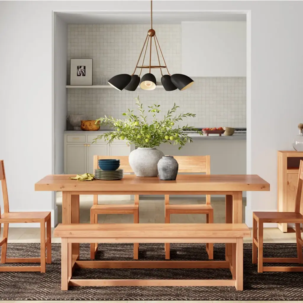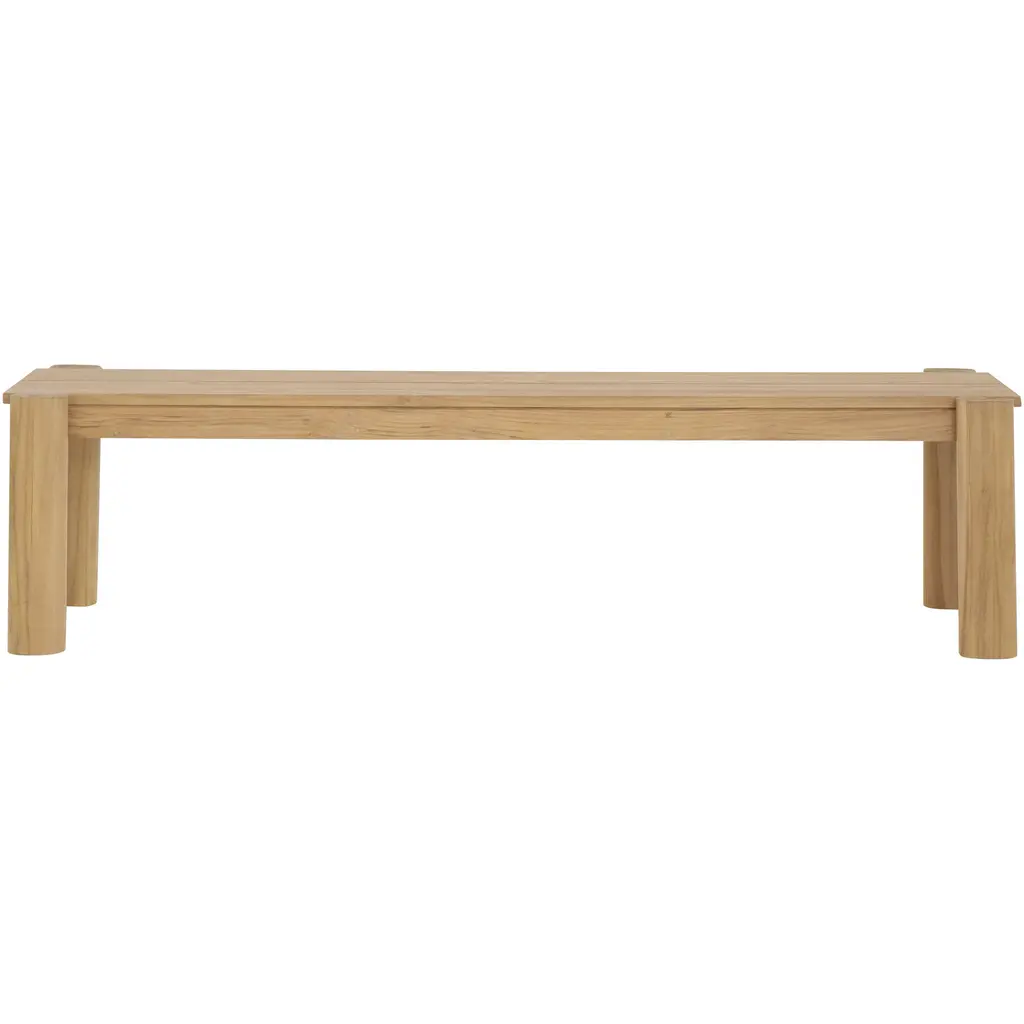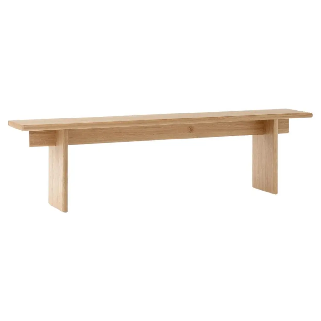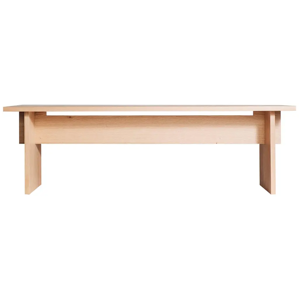 This dining bench features clean lines, natural wood grains, and a modern sled leg design. Made from kiln-dried solid pine, its unique character comes from natural variations like knots and organic grain variation. Offering seating for two, its compact size fits any room.