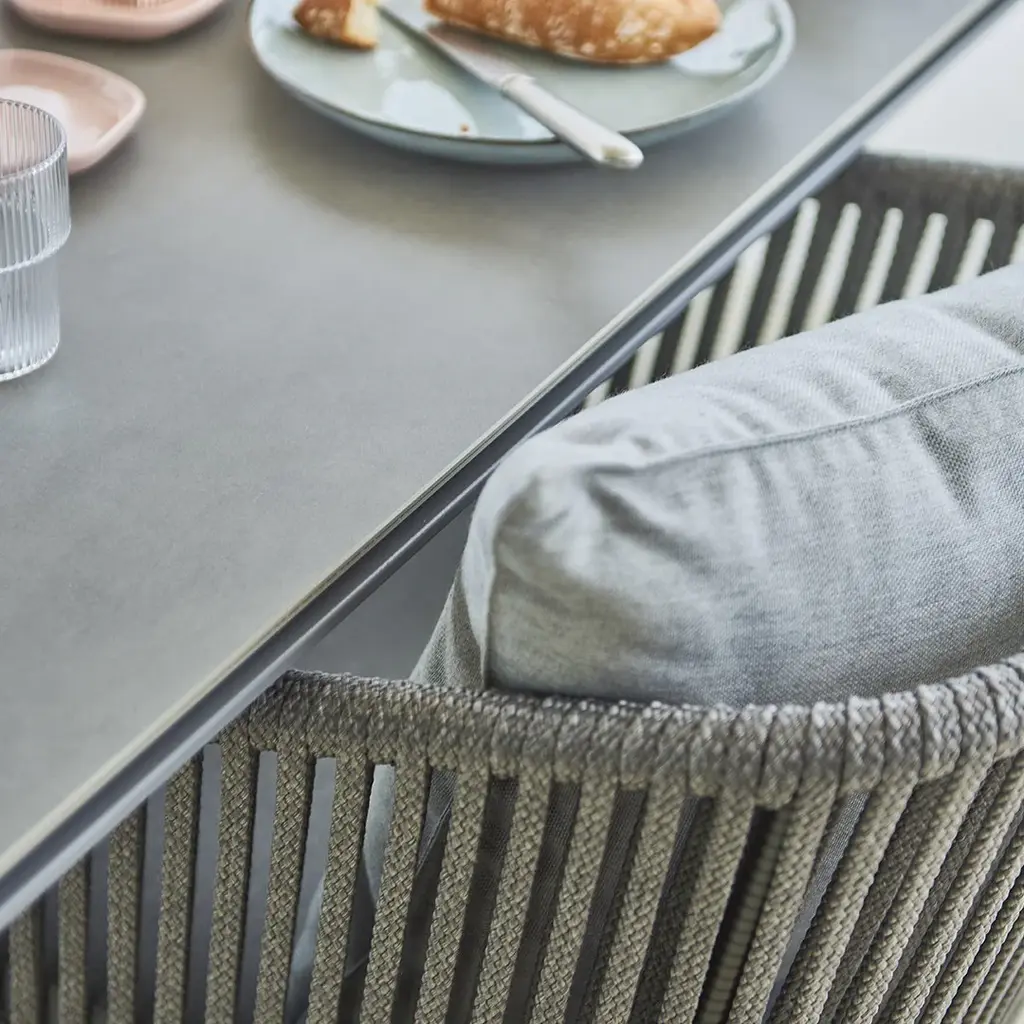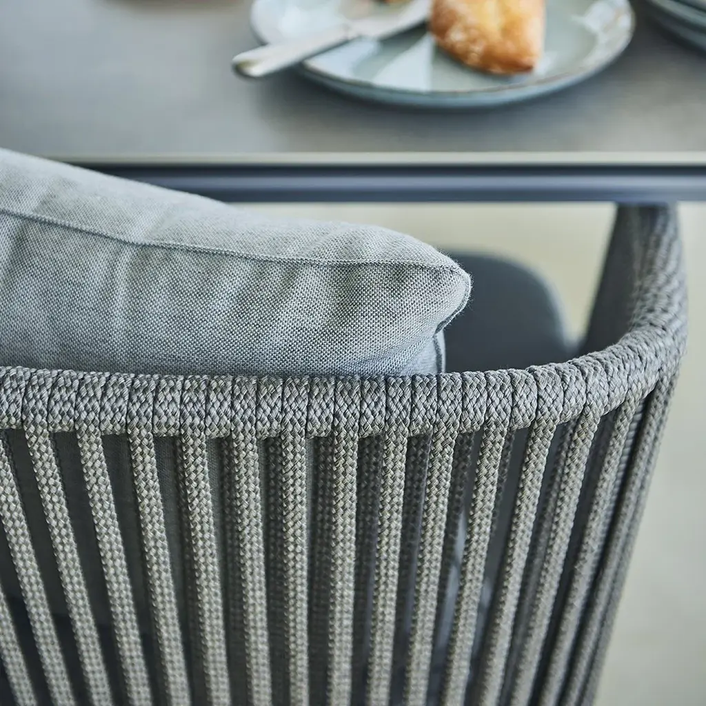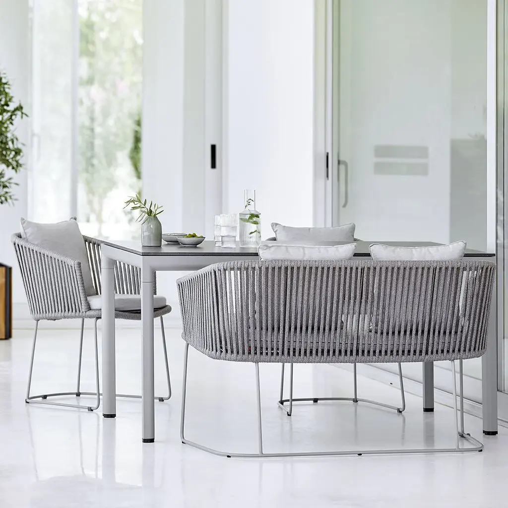 Moments dining bench is designed by the Danish designer duo Foersom + Hiort-Lorenzen MDD. Moments is the essence of Scandinavian, minimalist design with a high level of comfort. The bench is beautiful from every angle by virtue of its light, elegant and transparent design. Moments bench is made of weather-resistant Cane-line Soft Rope with Cane-line Nattà © cushions.