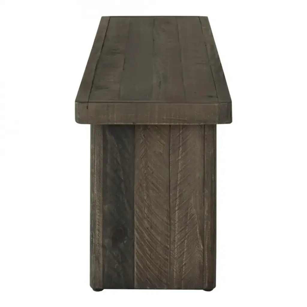 With a nod to the natural, bring earthy, on-trend rustic style to your living arrangement with the Monterey kitchen or dining bench. With spacious seating for three or more, this long bench features richly finished pinewood with a matte, driftwood-like finish and solid-panel base design for fluidity. Idyllic, warming contrast with clean lines and a minimalist shape, this bench brings ultimate, simplistic appeal whether you're designing for luxe or lounge. Complete the charm with the rustic Monterey collection, including a matching dining table, sideboard and beyond.