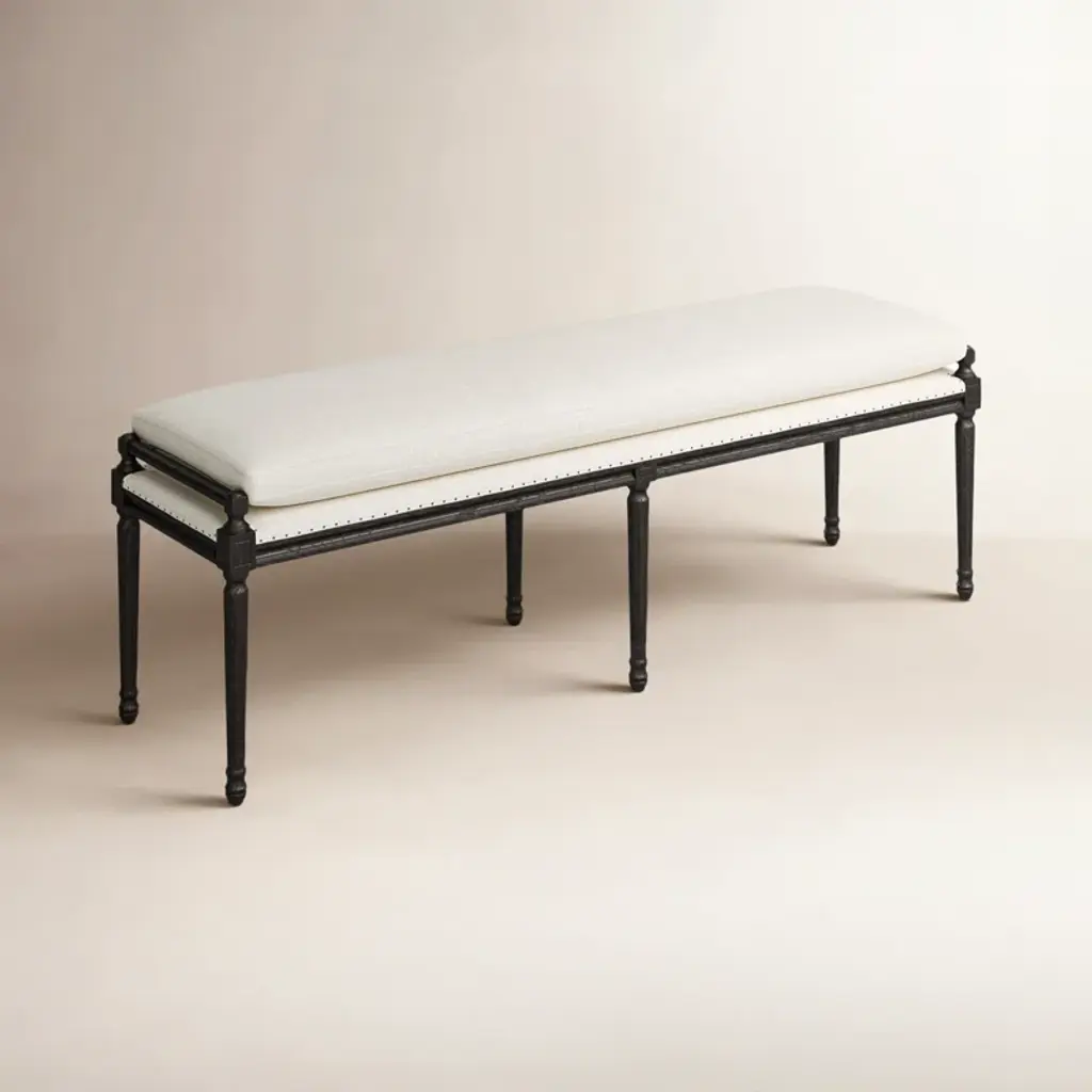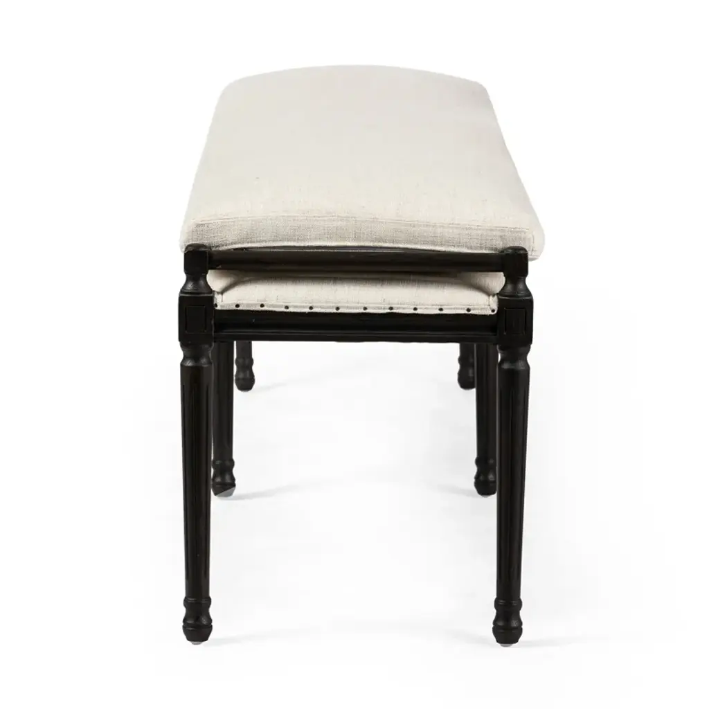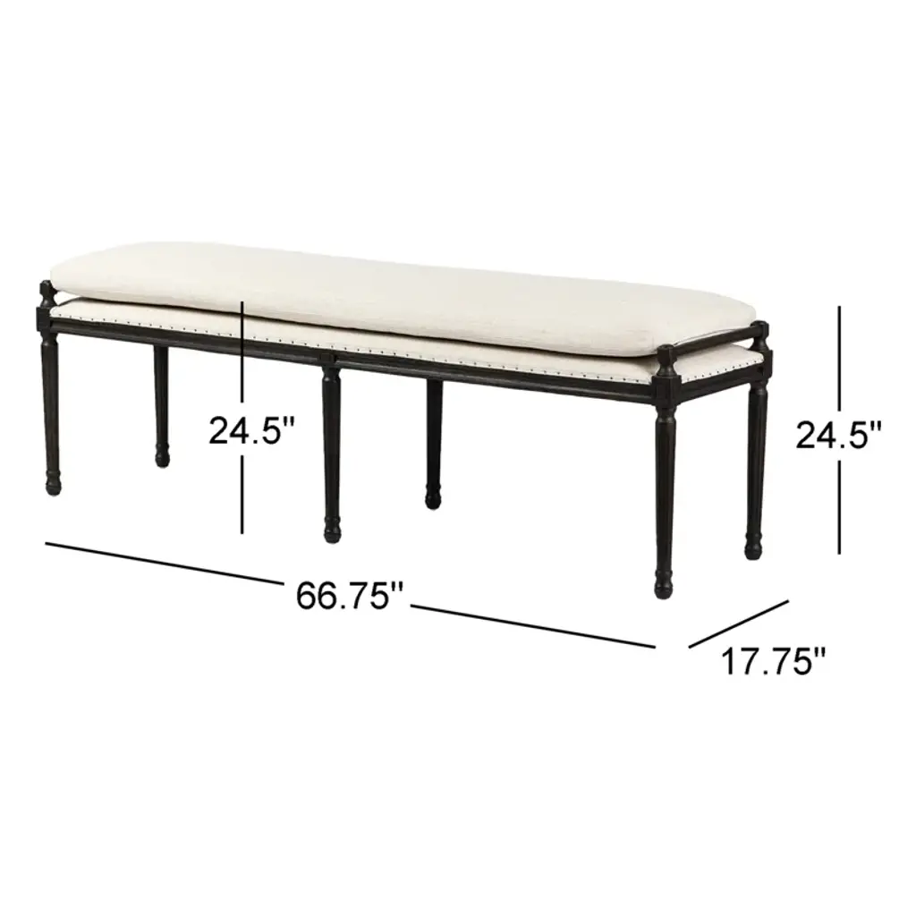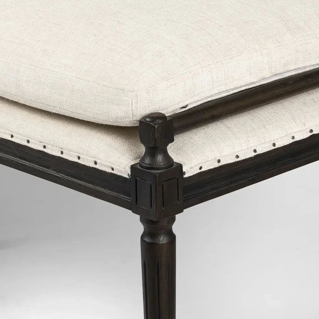 Solid oak legs support the bench-style dining seat with water-repellent performance fabric in a versatile cream. Nailhead trim for a fun finishing touch. Performance fabrics are specially created to withstand spills, stains, high traffic, and wear, ensuring long-term comfort and unmatched durability.