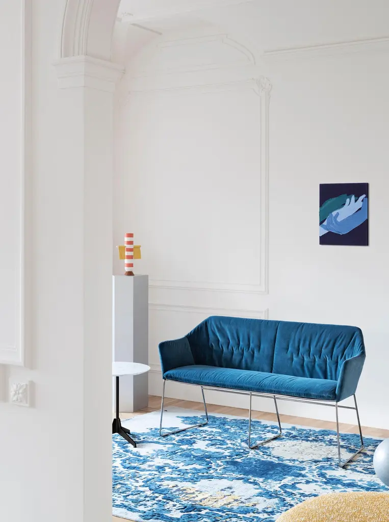 The New York family adds yet another seating solution to the dining area collection. New York Dining is a two-seater bench with integrated armrests that maintains the collection’s agile structure as well as the comfortable upholstery distinguished by small tonal quilted parts. Available in chrome or painted finish. Fully removable covers.Born in 1953 he left formal education and began, almost by chance, his experience in the field of the padded furniture. Fascinated by the world that surrounded him, he eagerly devoted himself to researching building forms and techniques which have borne fruit for the companies in which he worked. In 1991 he opened his studio as an independent designer and in 1993 he came across Saba Italia. New challenges and new incentives lead to the creation of the “nomad sofa”: Taos, Ananta, Limes, Nesting, Pixel. Creations that were born from reflection of new desires that encourage us to live in a less formal way, equipped with systems that enable change with simple gestures, by playing with shapes.Structure: In 11 mm wire drawn. The seat is in metal sheet. Glossy chrome or painted finish. Velfodera coating on resin 280gr/sqm.Padding: Seat cushion in 50IP polyurethane foam covered with white cotton on 380gr/sqm polyester fiber.Additional information:Material: Metal, polyurethane foam, upholsteryLeg finish: ChromeUpholstery: Vip, Sweet Velvet - 18 A13 - col.13Dimensions: 143 W x 54 D x 83 H cmSeat height: 47 cmAvailable in other upholstery options: C, E, lusso, extra, top, special, elite, royal, pelle club, pelle florida, pelle masterAvailable in other legs finish options: White, black, black nickelAvailable in other structural options: Without armest