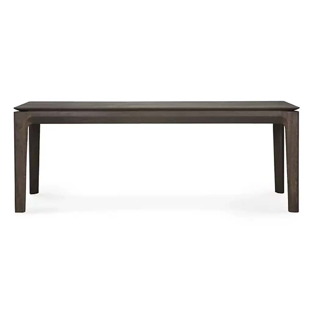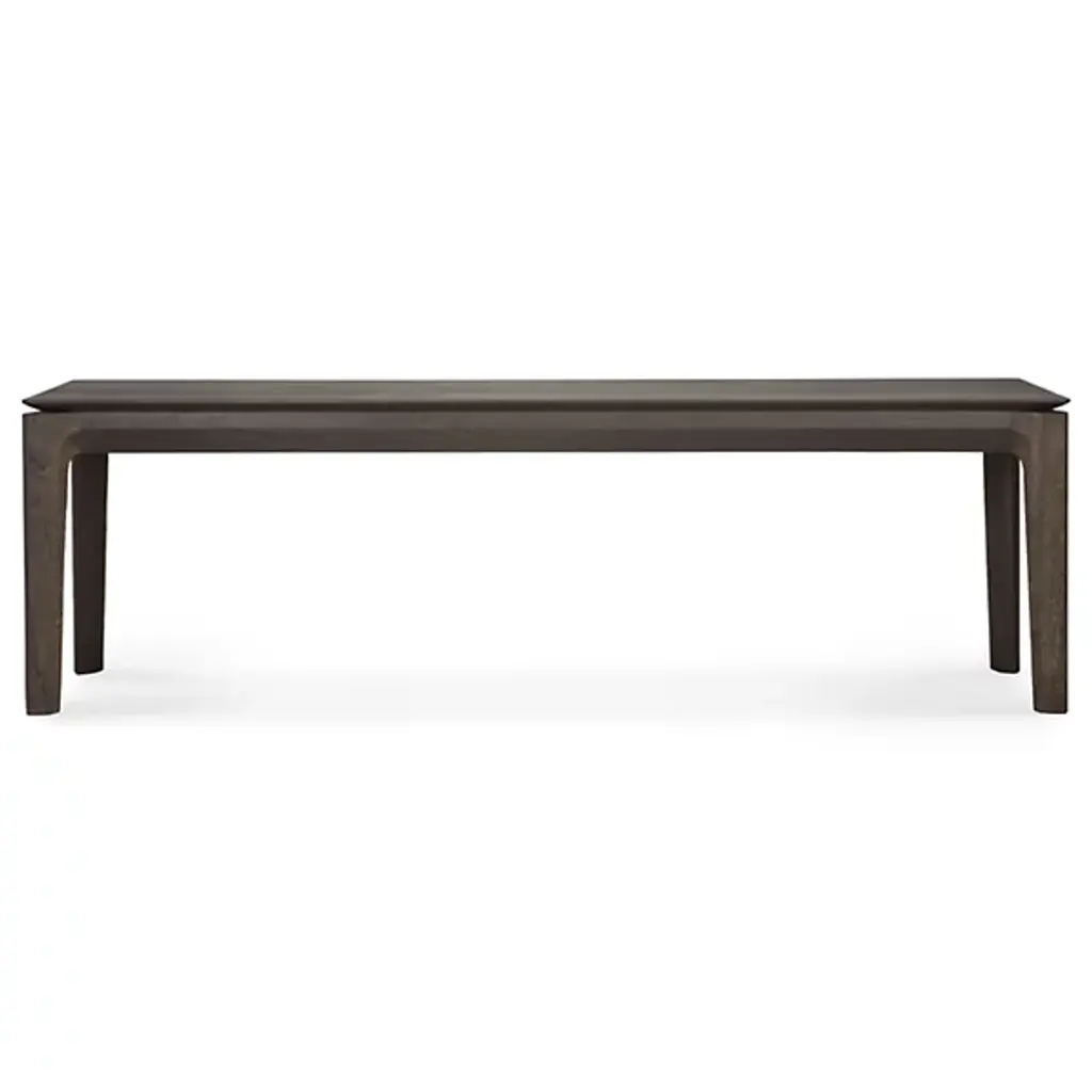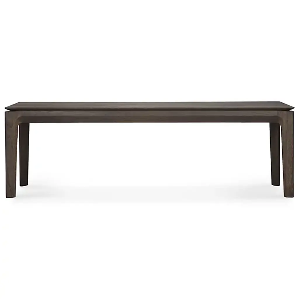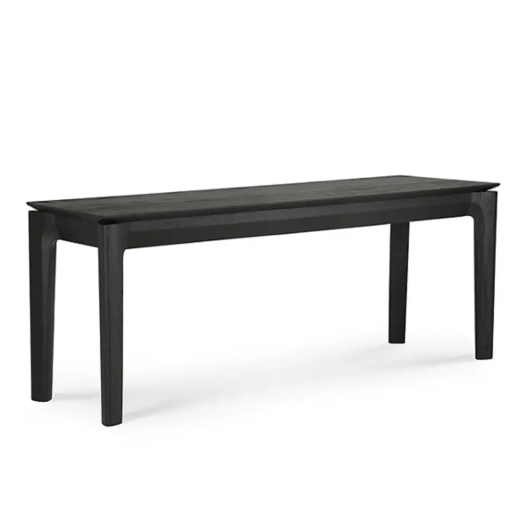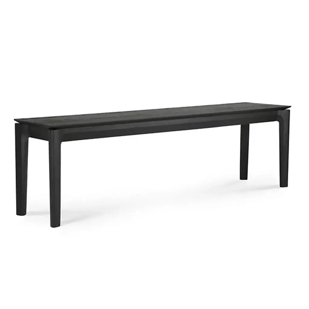 Bring a stylish accompaniment to your indoor living spaces with the Oak Bok Bench from Ethnicraft. A perfect accent to the Bok dining table, this Alain Van Havre design is made from solid oak in Serbia, starting with a set of four rounded legs attached to a cross frame that supports a flat, bevel-sided seat. The natural wood is smoothed to a natural gloss, blending an architectural lightness with a robust construction that leaves a memorable, lasting impression.