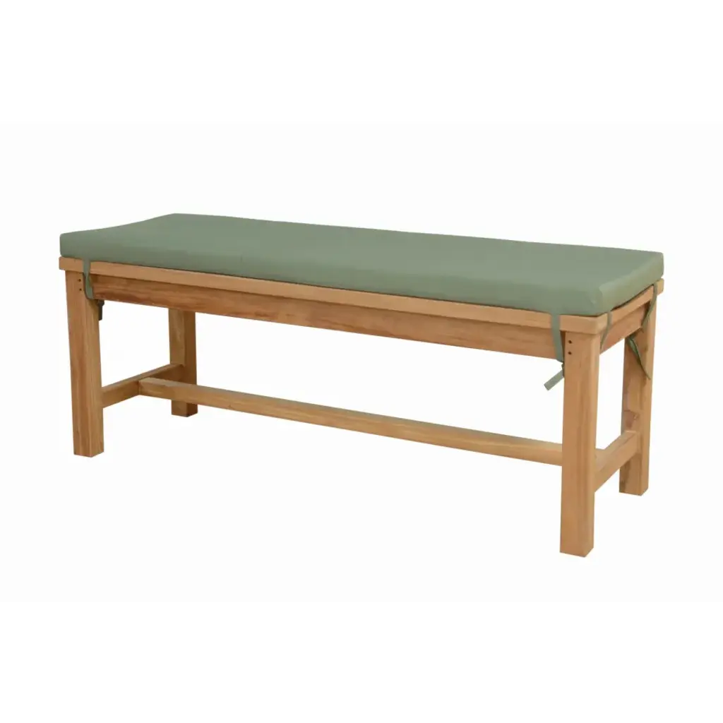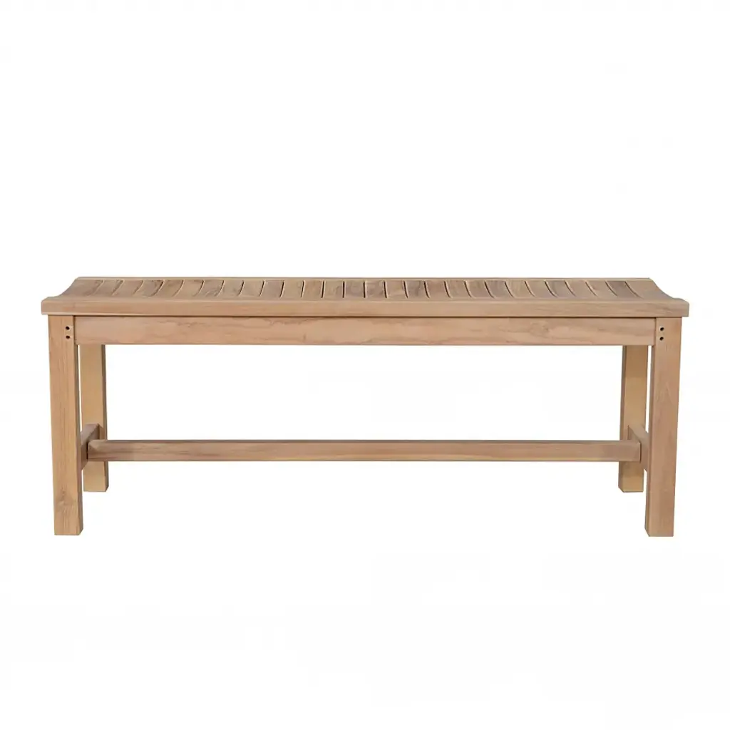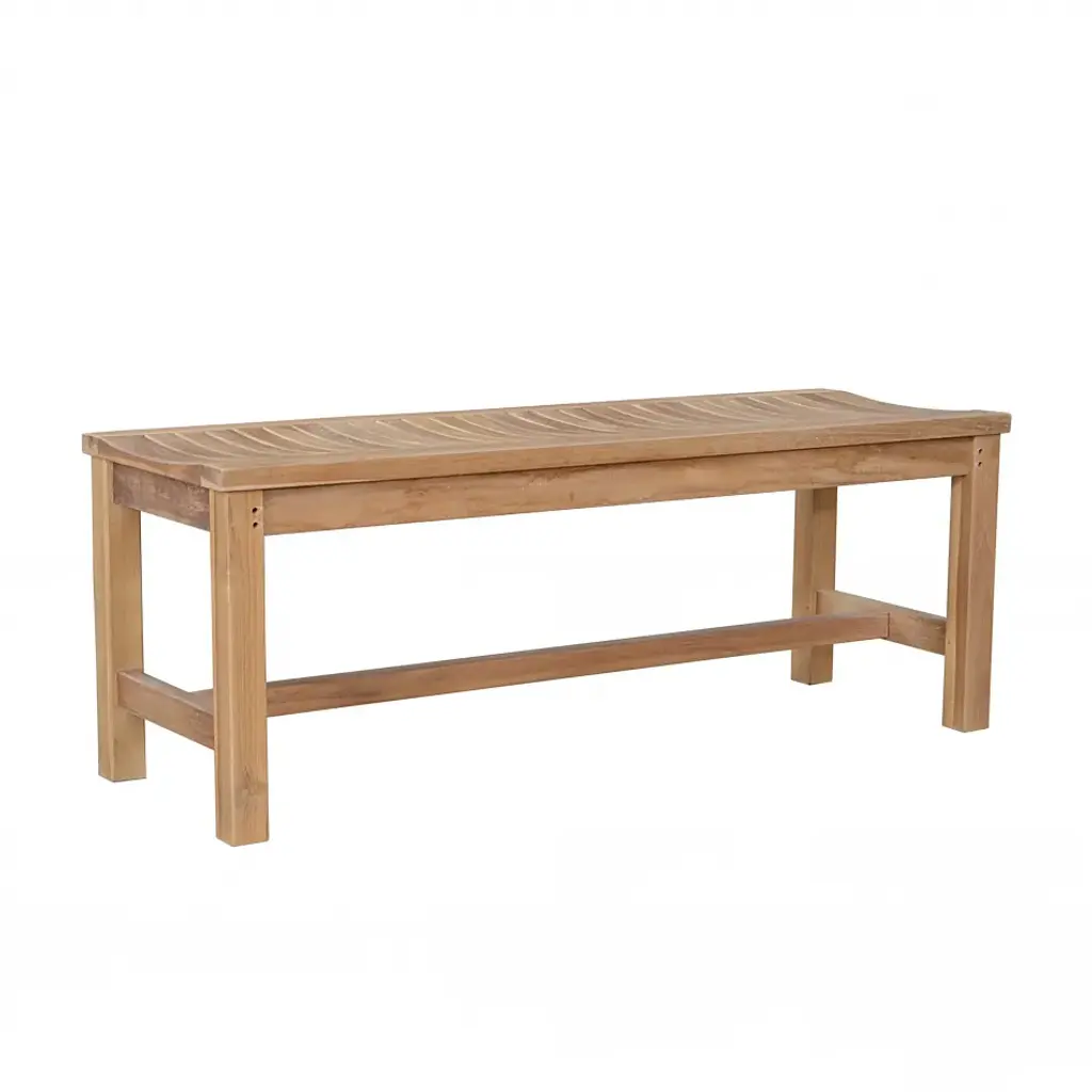 Unlike our benches and chairs with backs, the lowest point in this seat’s curve is directly in the center, allowing you to face in either direction. This bench can also be used for seating at our rectangular dining table for an outdoor picnic dining set or in area where a bench with a back would be just too tall. Expertly crafted from solid teak wood with mortise and tenon joinery, it is sealed in a waterbased coat for added weather protection against the elements of rain, hail or shine. Over time, the wood will weather to a beautiful silver gray patina, or occasionally scrub down with soap and water to keep in pristine condition. Add cushions with All-Weather Sunbrella Fabrics for added comfort. Quality built for generations.