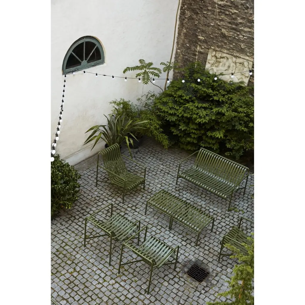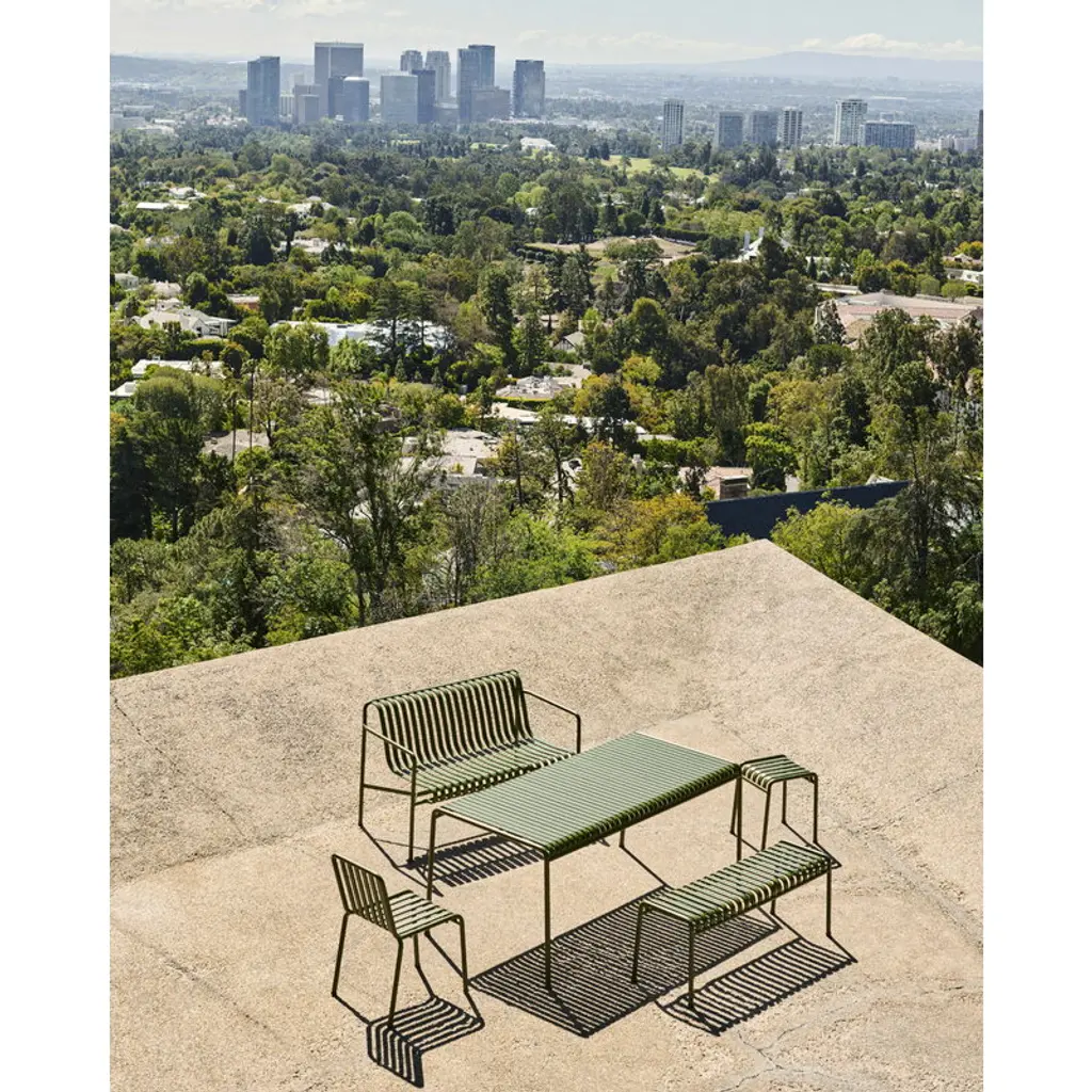 The sleek yet robust Palissade dining bench is a member of HAY’s versatile outdoor furniture collection. Palissade outdoor furniture features a strong, graphic design that consists of simple steel tubes and slats. Ronan and Erwan Bouroullec worked with the collection for two years and created a range of simple, balanced pieces that are well suited for terraces, balconies, gardens, cafés and public spaces. The Palissade chairs, tables and benches are sturdy but elegant, and perfect for outdoor use, since wind and water will pass through the galvanized steel frame. The Palissade furniture was designed to age well and its muted color palette adds to the timeless and versatile appearance.