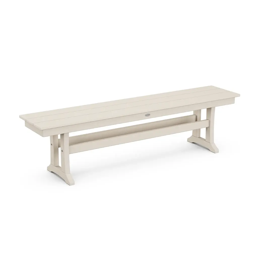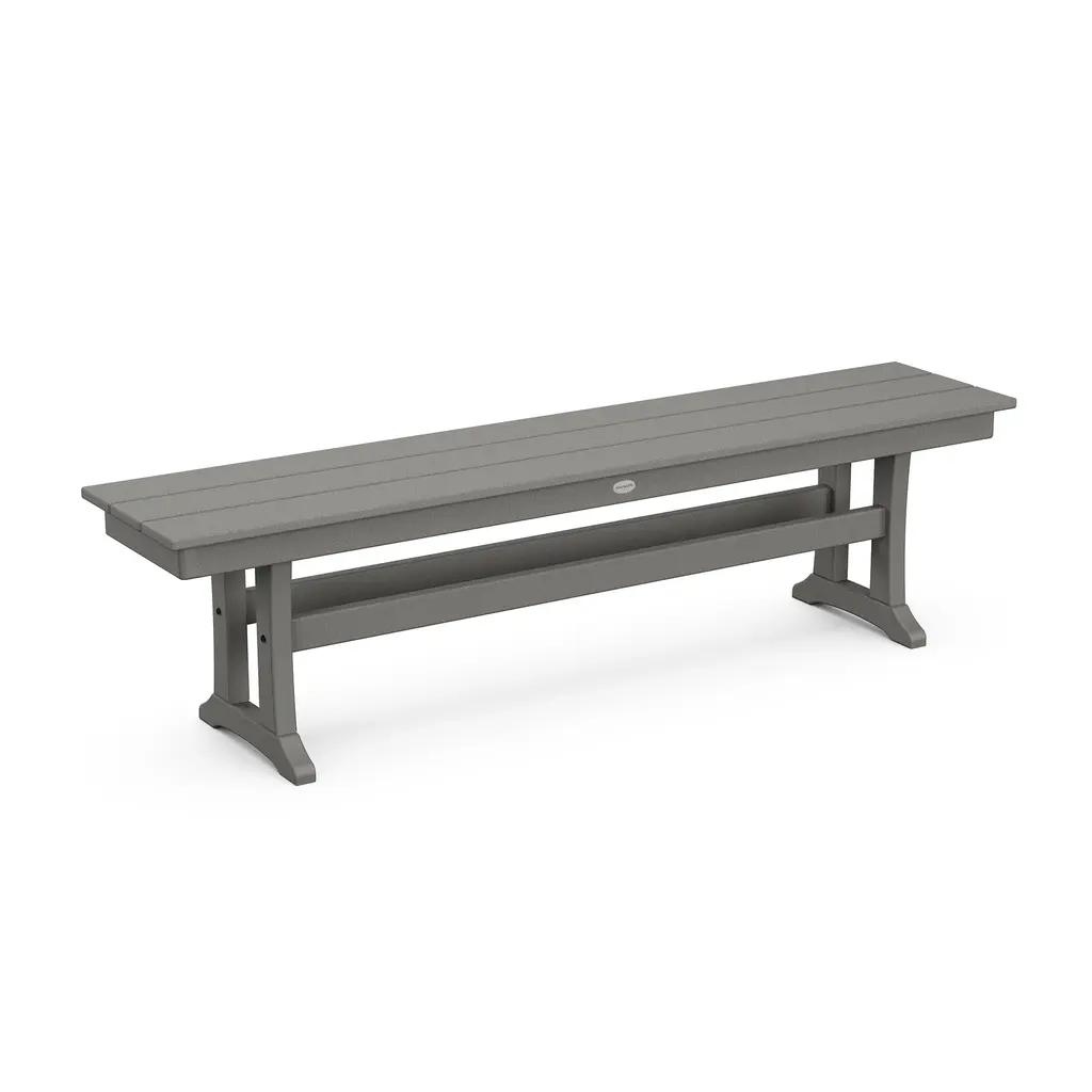 Perfectly for pairing with our Farmhouse Trestle 37" x 72" Dining Table, our Farmhouse Trestle 65" Bench comfortably seats two adults or three children. Constructed using genuine POLYWOOD® lumber and marine-grade hardware say goodbye to all of your outdoor furniture maintenance woes. Not only does this bench feature timeless style and convenience it is also weather-resistant, fade-resistant and easy to clean. Say goodbye to high-maintenance patio furniture and embrace a casual outdoor dining and seating experience with this innovative and versatile outdoor bench.