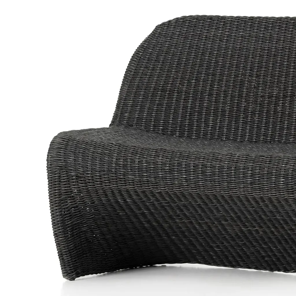 Based off a vintage shape, all-weather wicker seating brings dramatic curves to this statement-making dining bench. Ships In 10-14 Business Days Ships In 10-14 Business Days In Stock Mid December All-weather woven wicker frame This image is for illustrative purposes only. The colors shown are accurate within the constraints of lighting, photography, and the color accuracy of your screen.