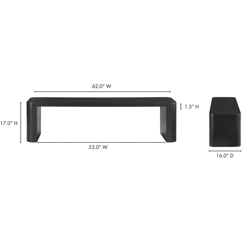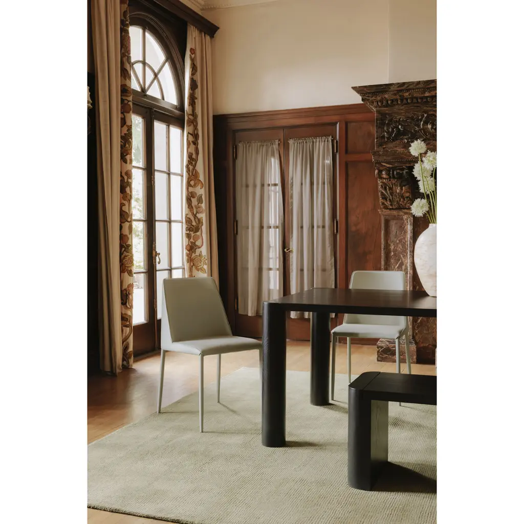Well-rounded and honest, the Post dining bench's gentle geometries come alive with each dining experience. Available in two sizes, this sweet bench series showcases the rounded posts on each of its four corners, a rhythmic play on a familiar design where warmth and peacefulness come together in a stately, distinguished look. A natural beauty in solid, blackened oak with a semi-gloss finish, Post is the perfect perch for meals to come surrounded by natural, sculpted elements.