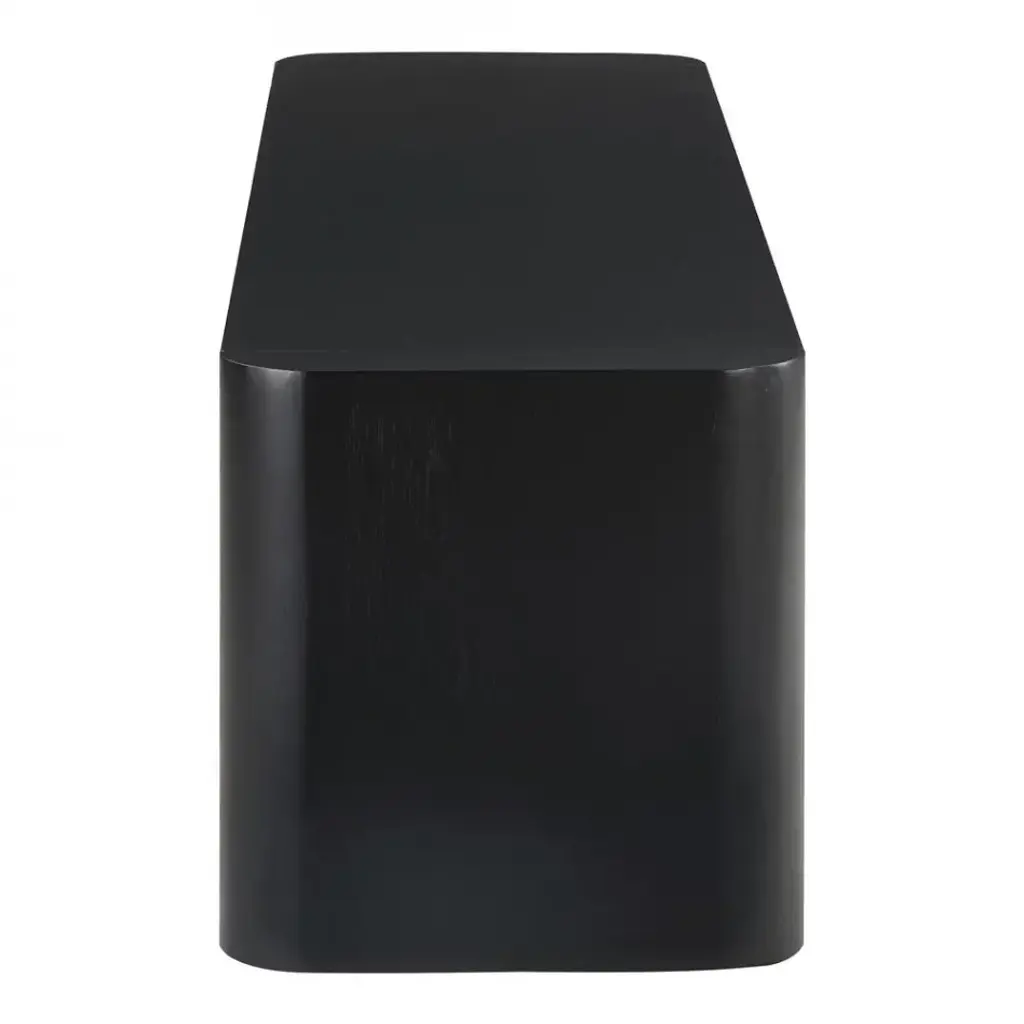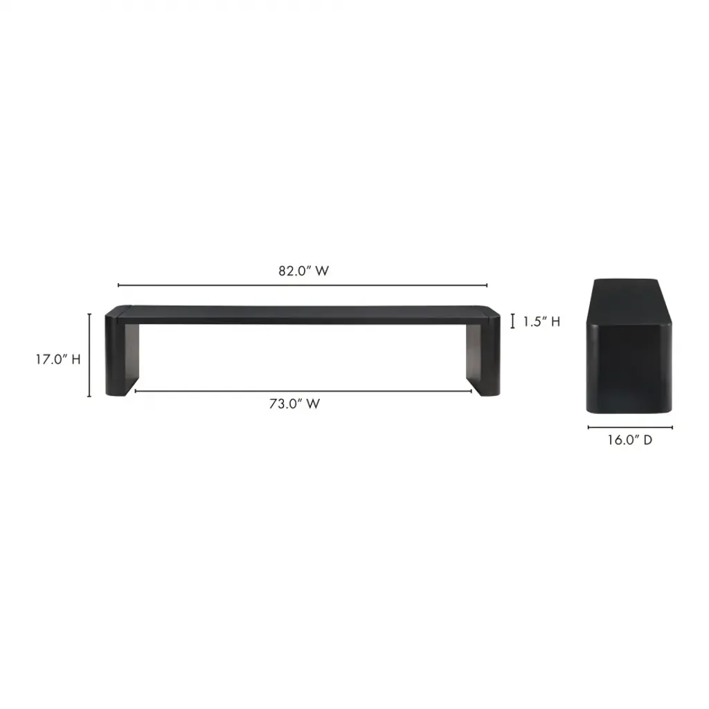 Well-rounded and honest, the Post dining bench's gentle geometries come alive with each dining experience. Available in two sizes, this sweet bench series showcases the rounded posts on each of its four corners, a rhythmic play on a familiar design where warmth and peacefulness come together in a stately, distinguished look. A natural beauty in solid, blackened oak with a semi-gloss finish, Post is the perfect perch for meals to come surrounded by natural, sculpted elements.