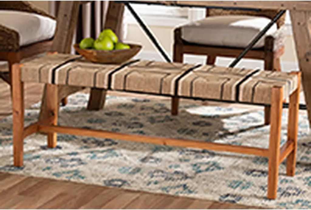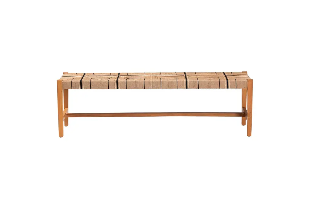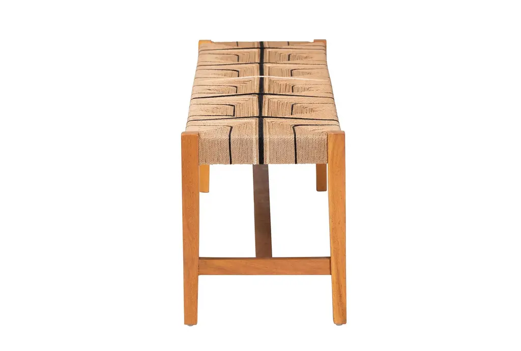 Prita Bohemian Paper Loom & Natural Mahogany Wood Dining Bench | Entryway