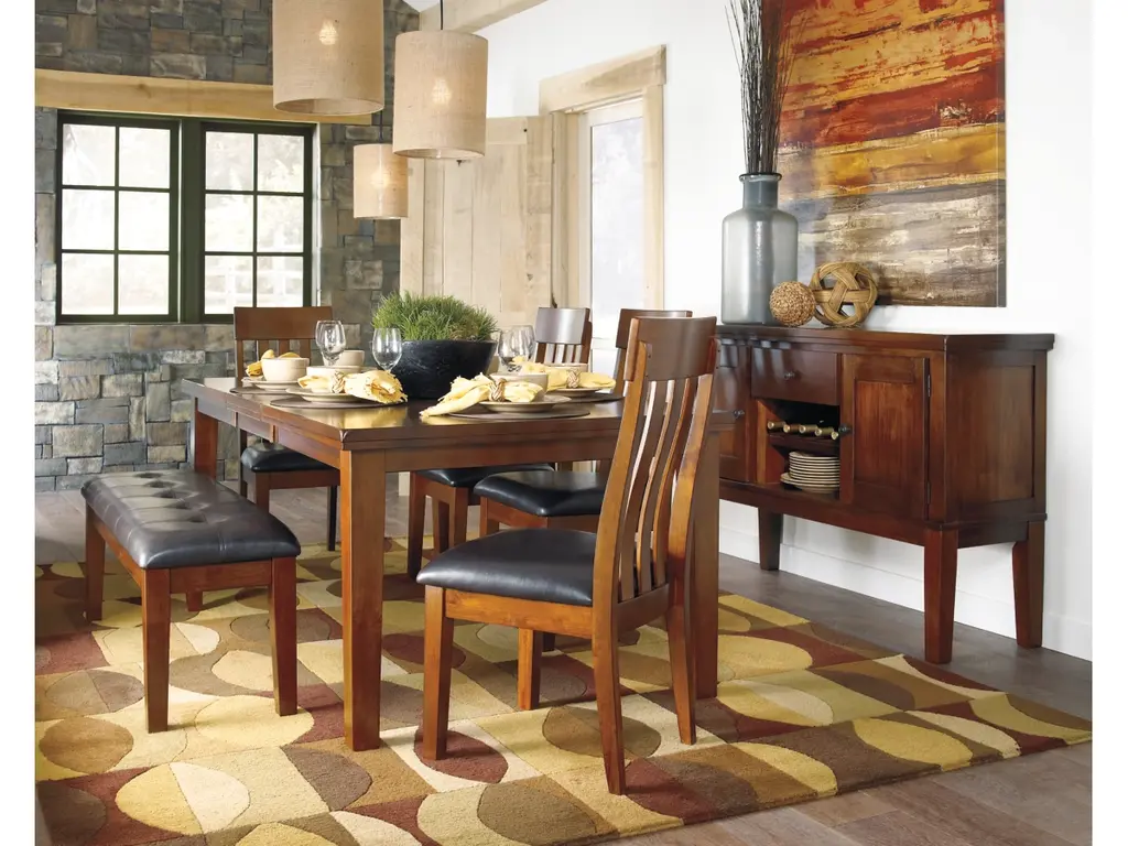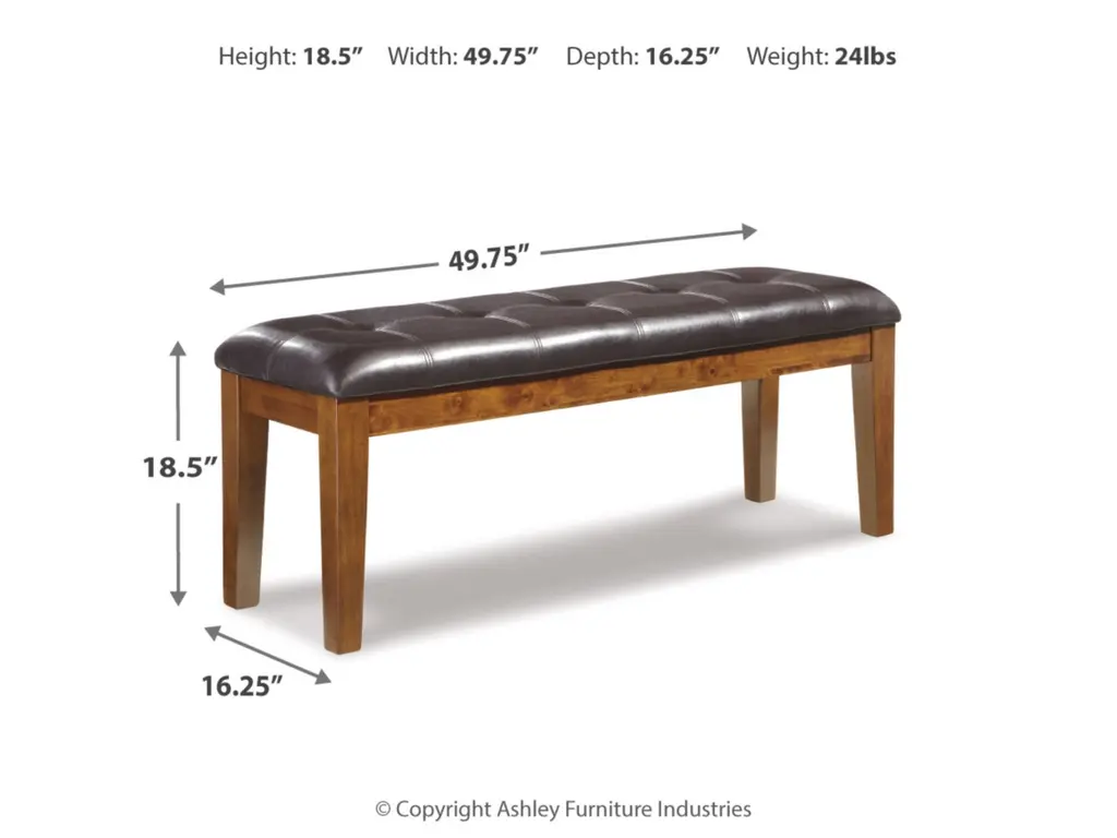 The Ralene large upholstered dining room bench beautifully captures the essence of rustic refinement. Its plushly upholstered faux leather makes pulling up a seat so much more enticing. Makes for easy cleanup, too.