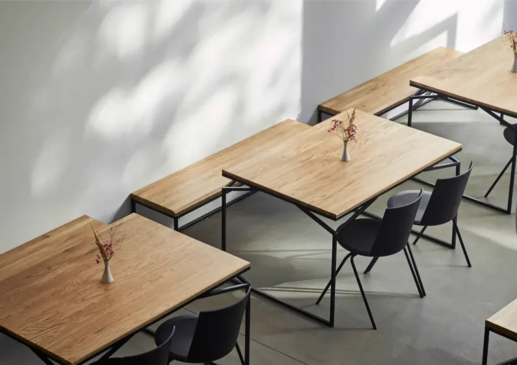 REA means highest standard and true contemporary Berlin design.The seating surface is 3.5 cm thick and is made of high-quality oak (up to 8 strips) and then oiled by hand.The metal frame is completely welded together and will be delivered in on piece. RAK by MAZANLI forms part of the RAK dining table & REA bench ensemble. The combination was originally created for the gourmet restaurant "Baldon" in the Lobe Studio in Berlin, which was designed by star architect Arno Brandlhuber. The elegant, minimalist line of the bench was used to create a strong contrast to the "brutality" of the concrete which dominates the entire building complex. Following the great interest in the furniture, MAZANLI has permanently included the ensemble in its collection.The sense of weightlessness is made possible by the use of thin but highly robust square tubes (2 cm x 2 cm) made from high quality German Kruppstahl. The steel used is untreated and develops a unique patina over time, depending on the surrounding climate.