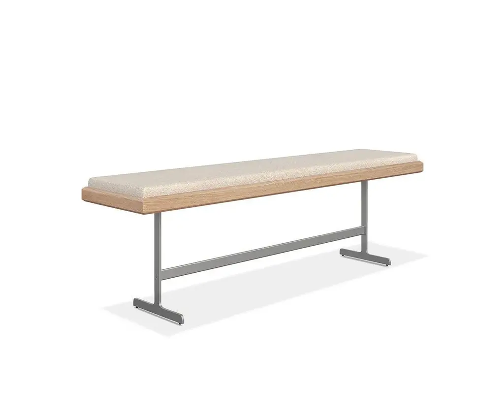 Designed to complement the Roman Dining Table, the Roman Dining Bench dials up the comfort with a cushioned seat upholstered in sumptuously soft fabric, so it's perfect for everyday dinners and extended gatherings. The white oak construction is both stylish and sturdy, while the modern metal legsmatching those on other Roman Collection piecescomplete the contemporary aesthetic.