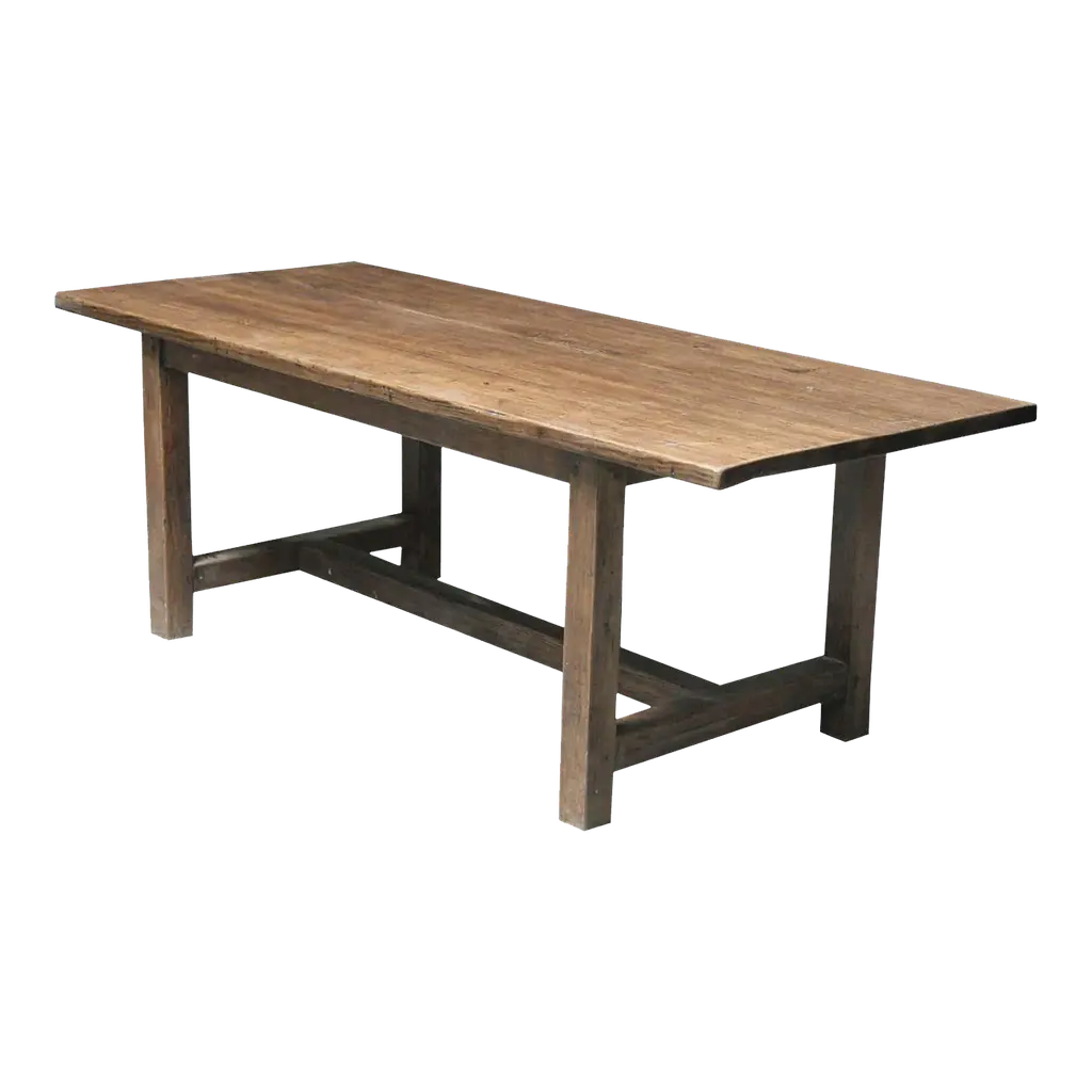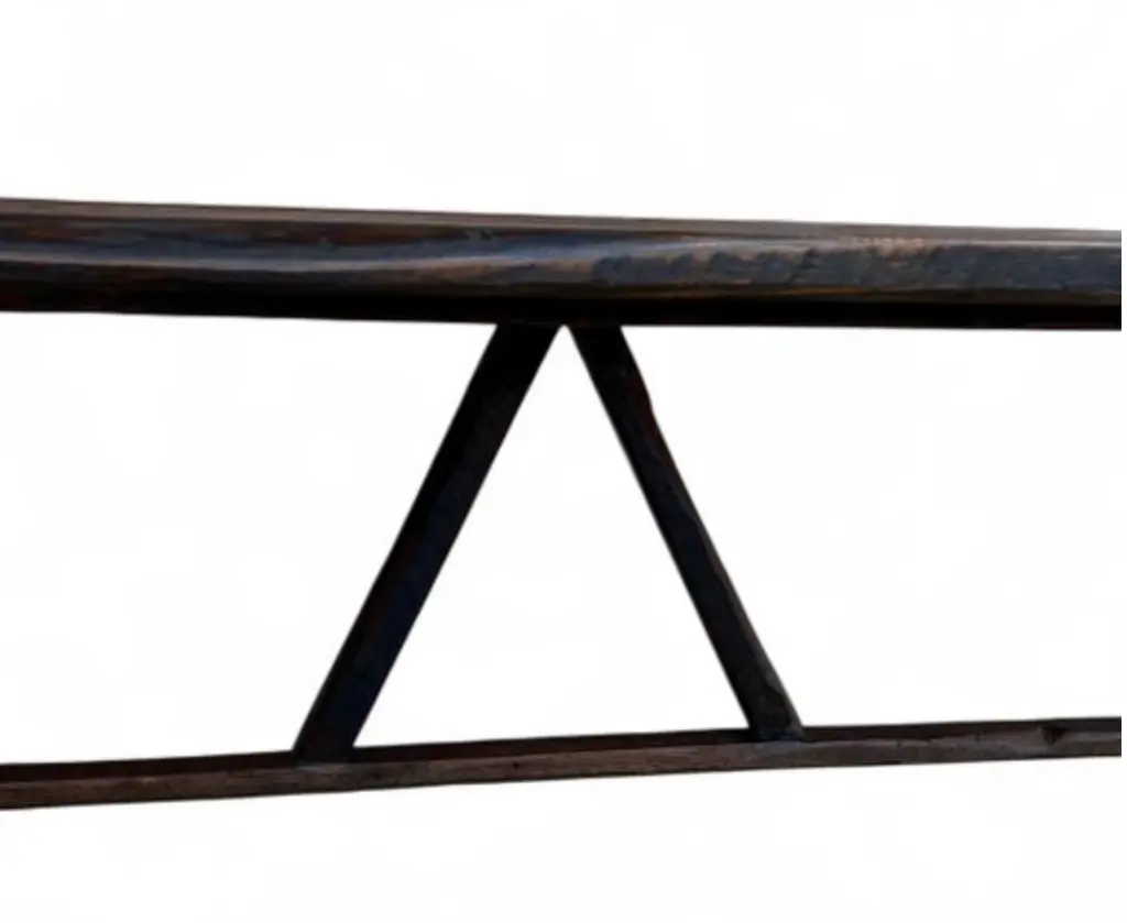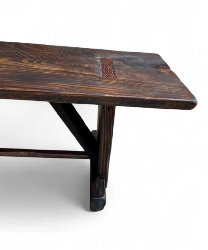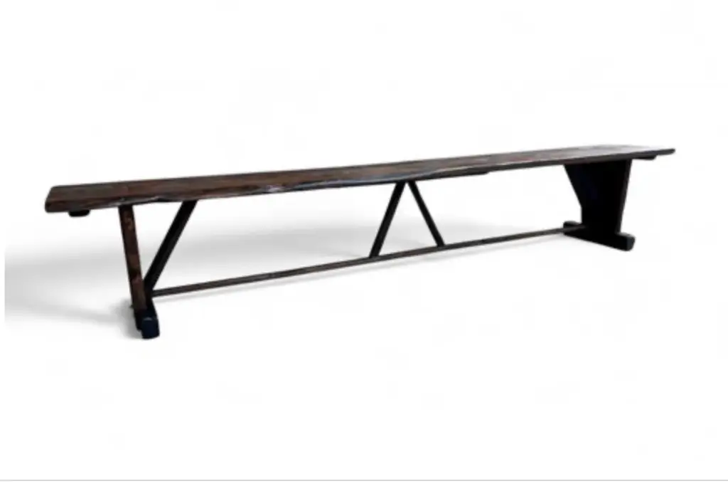 Made-to-Order Farmhouse Trestle Bench A bold yet refined bench in the rustic European farmhouse tradition. Made to order using century-old reclaimed barnwood, each piece is built by hand using time-honored joinery and finished with no visible modern hardware. The two-plank top is supported by cantilevered legs and a central trestle stretcher—offered with or without (se our Rustic French Farmhouse Listing), depending on your preferred profile. Available in two finish options: a warm two-tone combination of natural and walnut, or Archaic’s custom “Espresso” tone—each sealed with a low-sheen matte clear-coat. Subtle dowel details complete the build, with brass-finished accents on the Espresso version. Style & Materials Handcrafted from reclaimed barnwood over a century old Species may include white and red oak, cypress, elm, walnut, butternut, white pine, and heart pine Circle-sawn texture preserved for character Traditional mortise-and-tenon joinery, dowel detailing Matte clear-coat finish available in Natural + Walnut or Espresso Espresso version features brass-finished dowels Use It For Ideal as a long dining bench, dramatic entryway seat, or grounding accent at the foot of a bed. Also well-suited for gallery, retail, or hospitality spaces needing presence and durability. Dimensions 16 inches deep x 18 inches high