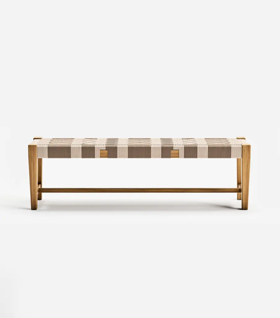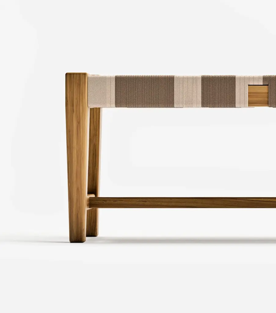 The woven cord Santa Cruz is a comfortable living and dining bench made from solid FSC®-Certified teak. The woven cord seat is inspired by Danish Cord Mid-Century design and traditional Japanese pieces.