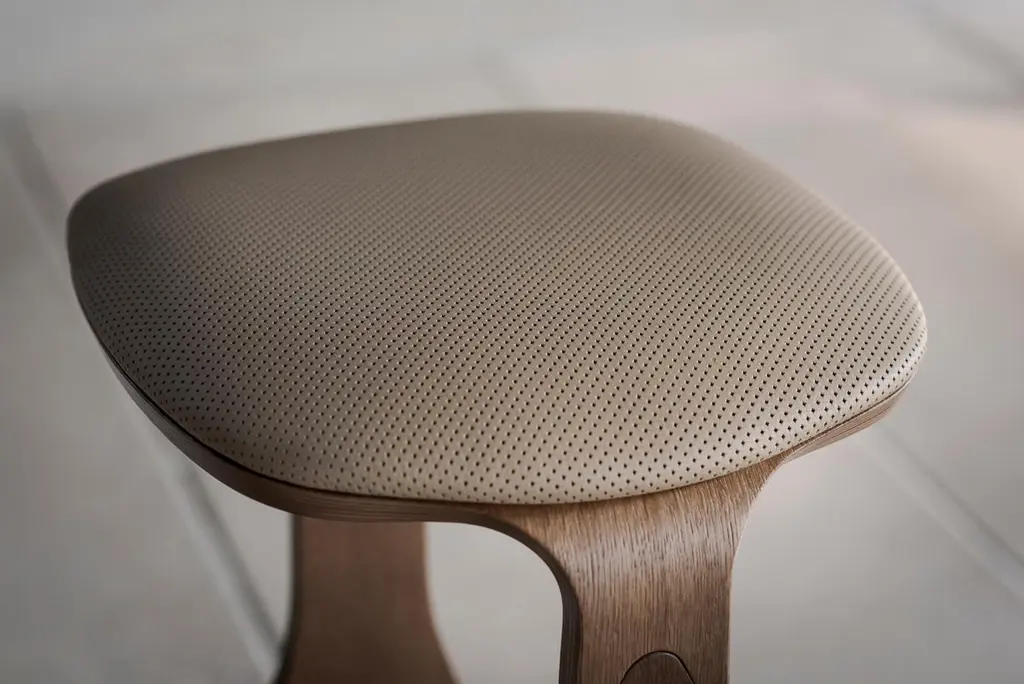 Counter stool Lavitta 65 by PoiatDesigners: Timo Mikkonen & Antti Rouhunkoski Lavitta 2020Model shown: Black oak Dimensions: H. 75 x 50 x 44 cmThe latest member of the Lavitta Collection, the Lavitta Counter Stool continues focusing on the sophisticated union of traditional wooden furniture with contemporary design. Designed by Timo Mikkonen and Antti Rouhunkoski of Poiat Studio in 2020, the stools follow the lines of the Lavitta Chairs with their tapering legs and rounded corners. The base of the stools is made entirely of veneered and moulded plywood, without any steel parts. The Lavitta Counter Stool and Bar Stool can be customized with a variety of leather and wool upholsteries.Drawing its influence from the traditional rugged Finnish outdoor furniture, the award-winning Lavitta Collection was designed by Poiat Studio as their first furniture collection for Poiat Furniture.Manufactured in Finland and Estonia, the members of the Lavitta product family are chairs, dining tables, benches and stools. The counter stools are made of two pieces of moulded plywood, and they can be tailored to different spaces with a variety of leather and wool upholsteries.