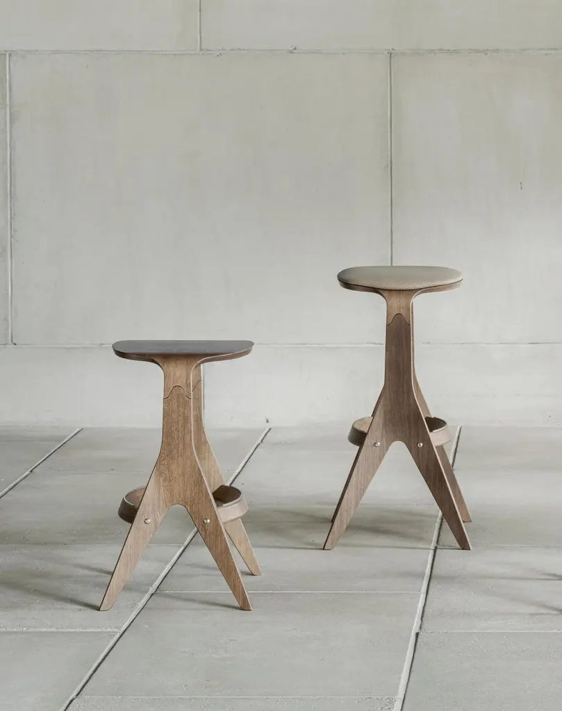 Counter stool Lavitta 75 by PoiatDesigners: Timo Mikkonen & Antti Rouhunkoski Lavitta 2020Model shown: Dark oak Dimensions: H. 75 x 50 x 44 cmThe latest member of the Lavitta Collection, the Lavitta Counter Stool continues focusing on the sophisticated union of traditional wooden furniture with contemporary design. Designed by Timo Mikkonen and Antti Rouhunkoski of Poiat Studio in 2020, the stools follow the lines of the Lavitta Chairs with their tapering legs and rounded corners. The base of the stools is made entirely of veneered and moulded plywood, without any steel parts. The Lavitta Counter Stool and Bar Stool can be customized with a variety of leather and wool upholsteries.Drawing its influence from the traditional rugged Finnish outdoor furniture, the award-winning Lavitta Collection was designed by Poiat Studio as their first furniture collection for Poiat Furniture.Manufactured in Finland and Estonia, the members of the Lavitta product family are chairs, dining tables, benches and stools. The counter stools are made of two pieces of moulded plywood, and they can be tailored to different spaces with a variety of leather and wool upholsteries.