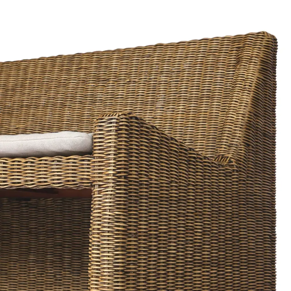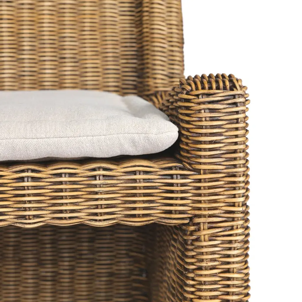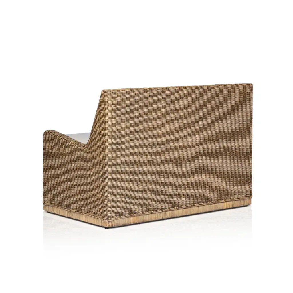 A design collaboration by Amber Lewis and Four Hands. Antique-inspired coastal style. Rattan introduces varying natural shades and texture to this dining bench, and the frame's soft lines and fabric cushion invite a comfortable sit. Option to style alone or pair with other pieces in the collection.