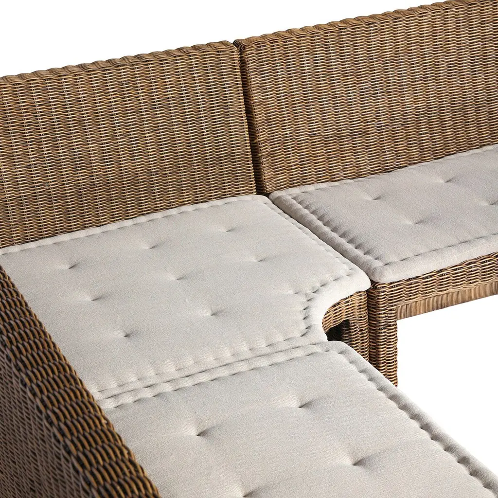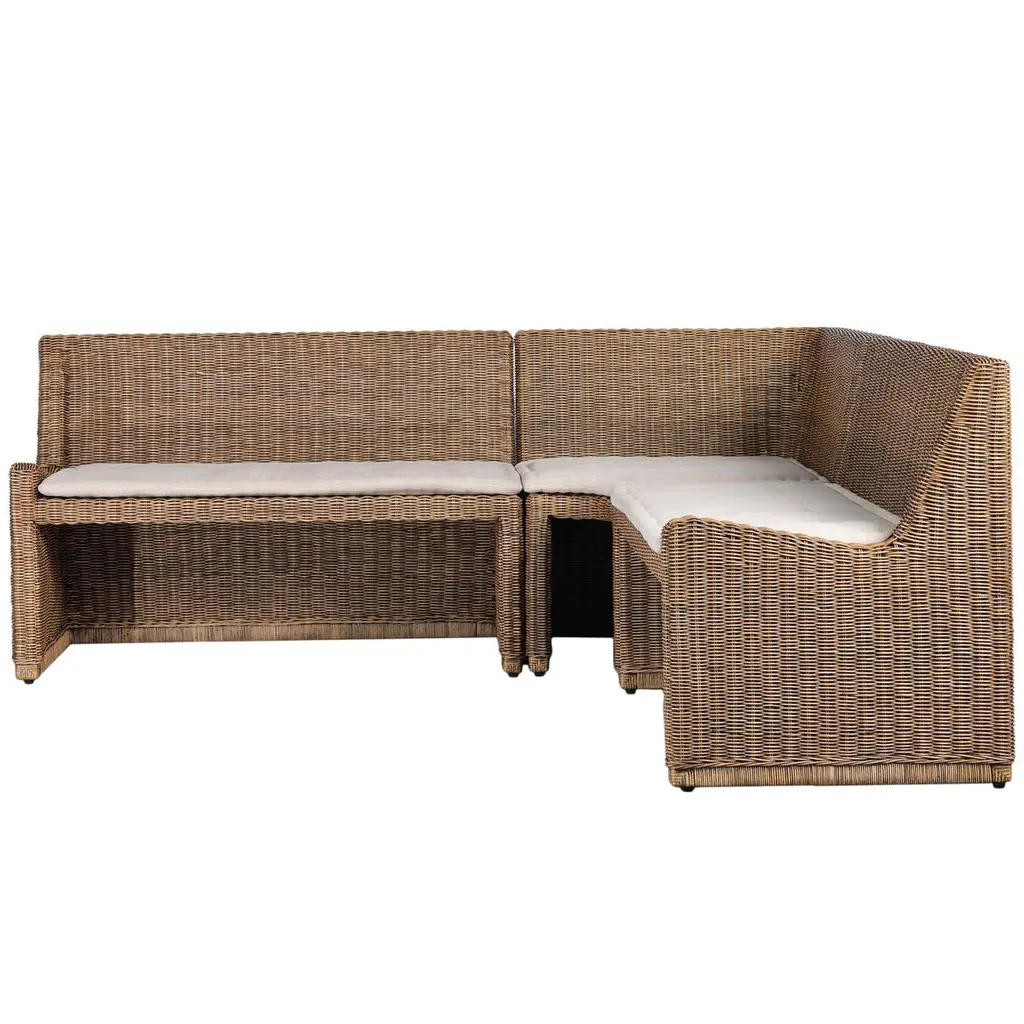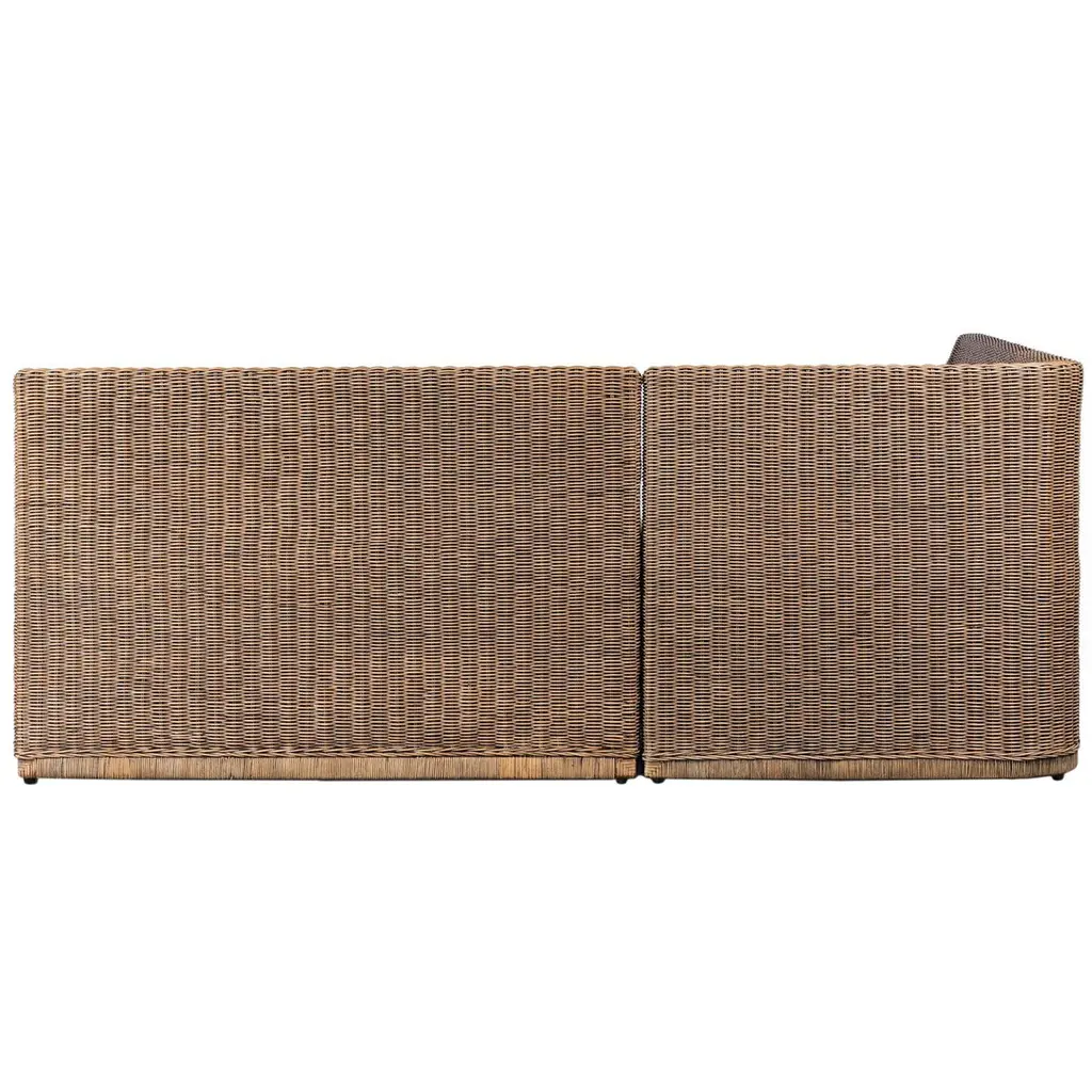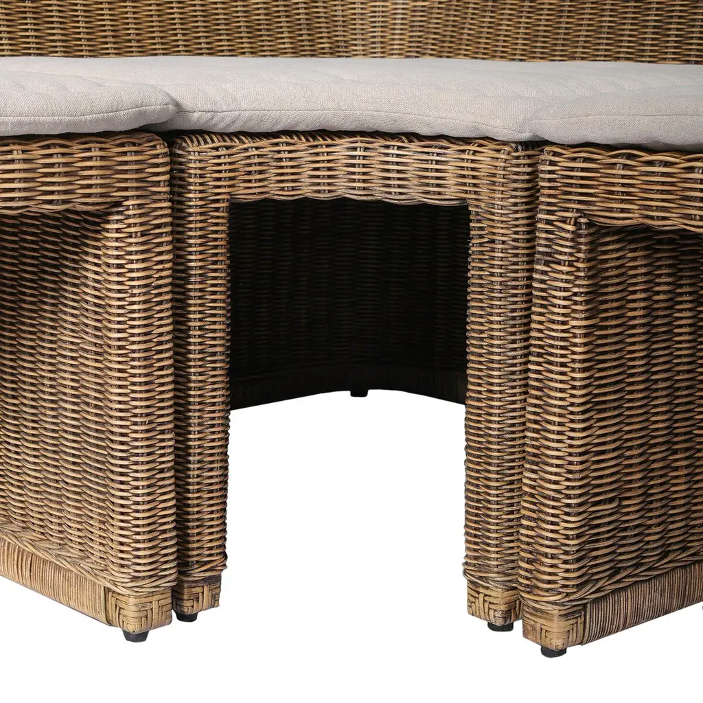 Antique-inspired coastal style. Rattan introduces varying natural shades and texture to this dining bench, and the frame's soft lines and fabric cushion invite a comfortable sit. Option to style alone or pair with other pieces in the collection. A design collaboration by Amber Lewis and Four Hands.